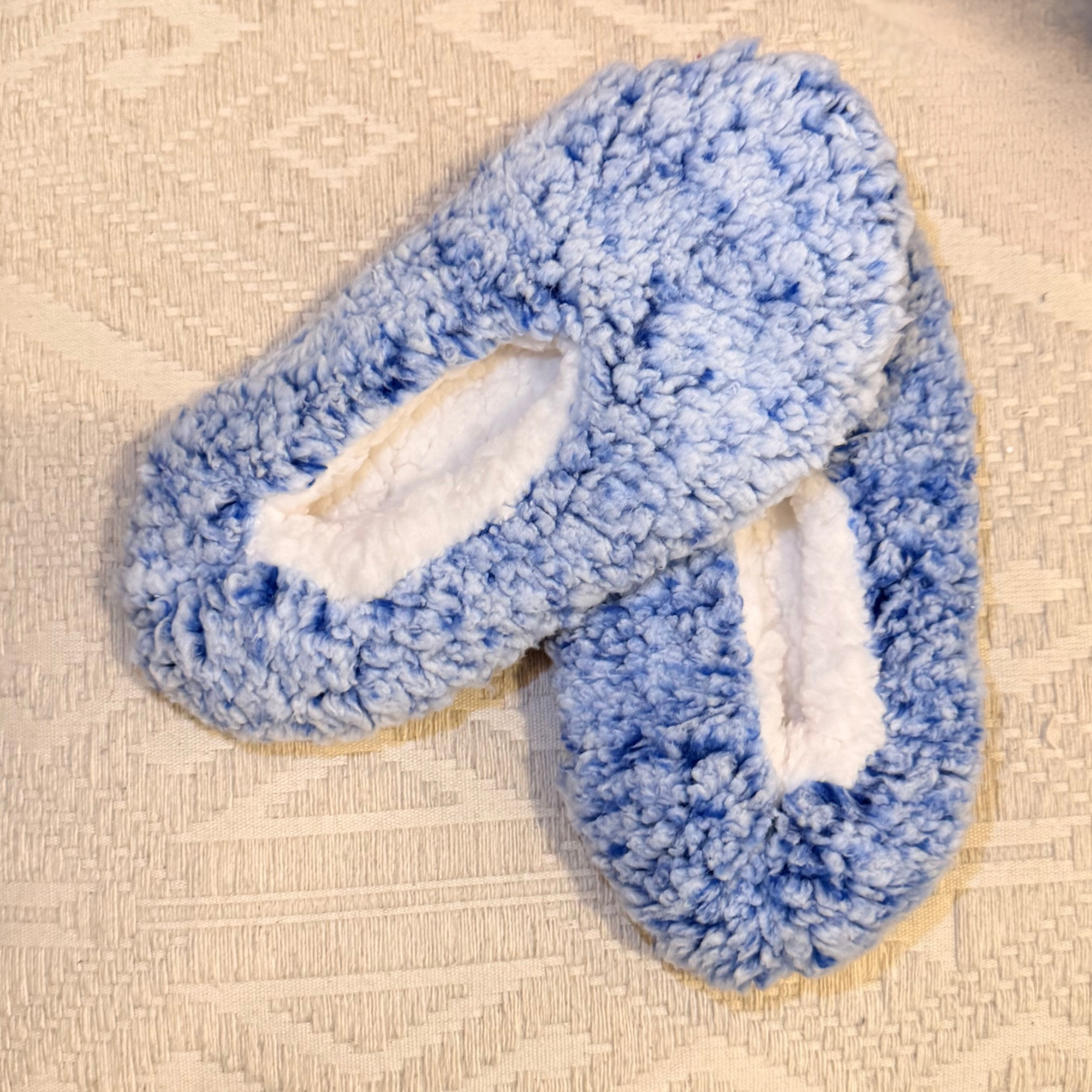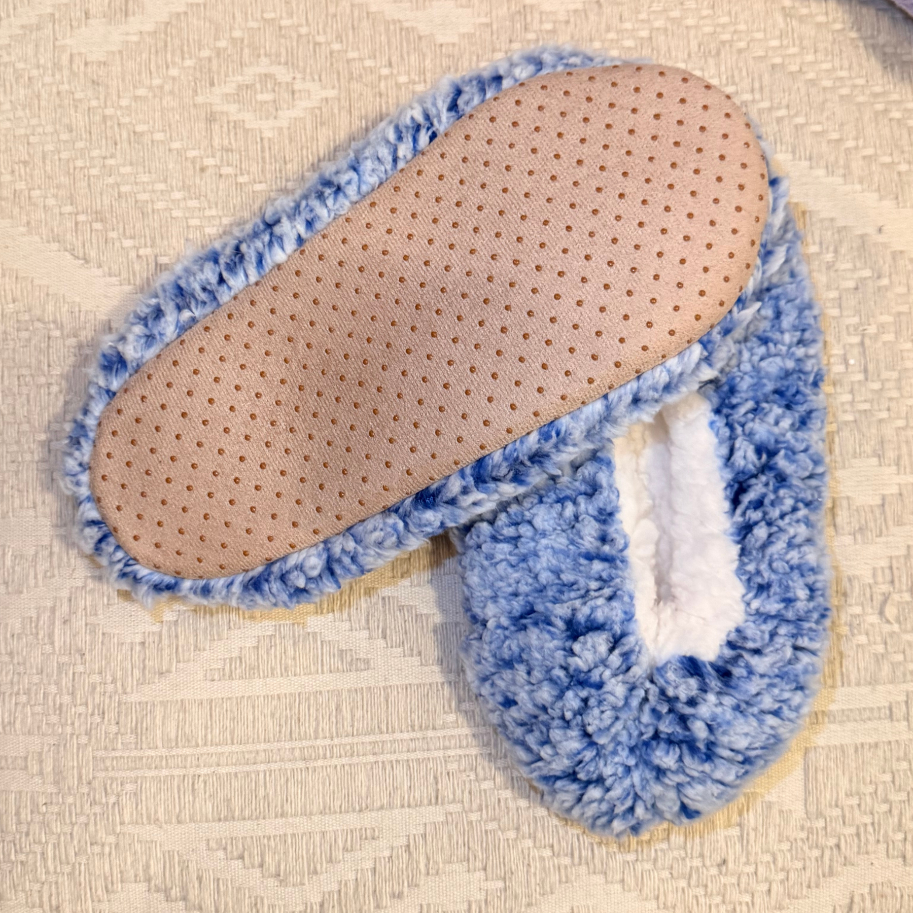 Kelsy Slippers in Blue by Madison’s Niche — a serene blend of comfort and style. Made with a thickened fleece lining, these comfortable house slippers keep your feet warm and relaxed all season long. The fabric sole ensures a quiet, cushioned step, perfect for peaceful moments at home. In a calming blue hue, these indoor warm home shoes add effortless elegance to your holiday 2025 lounging essentials.