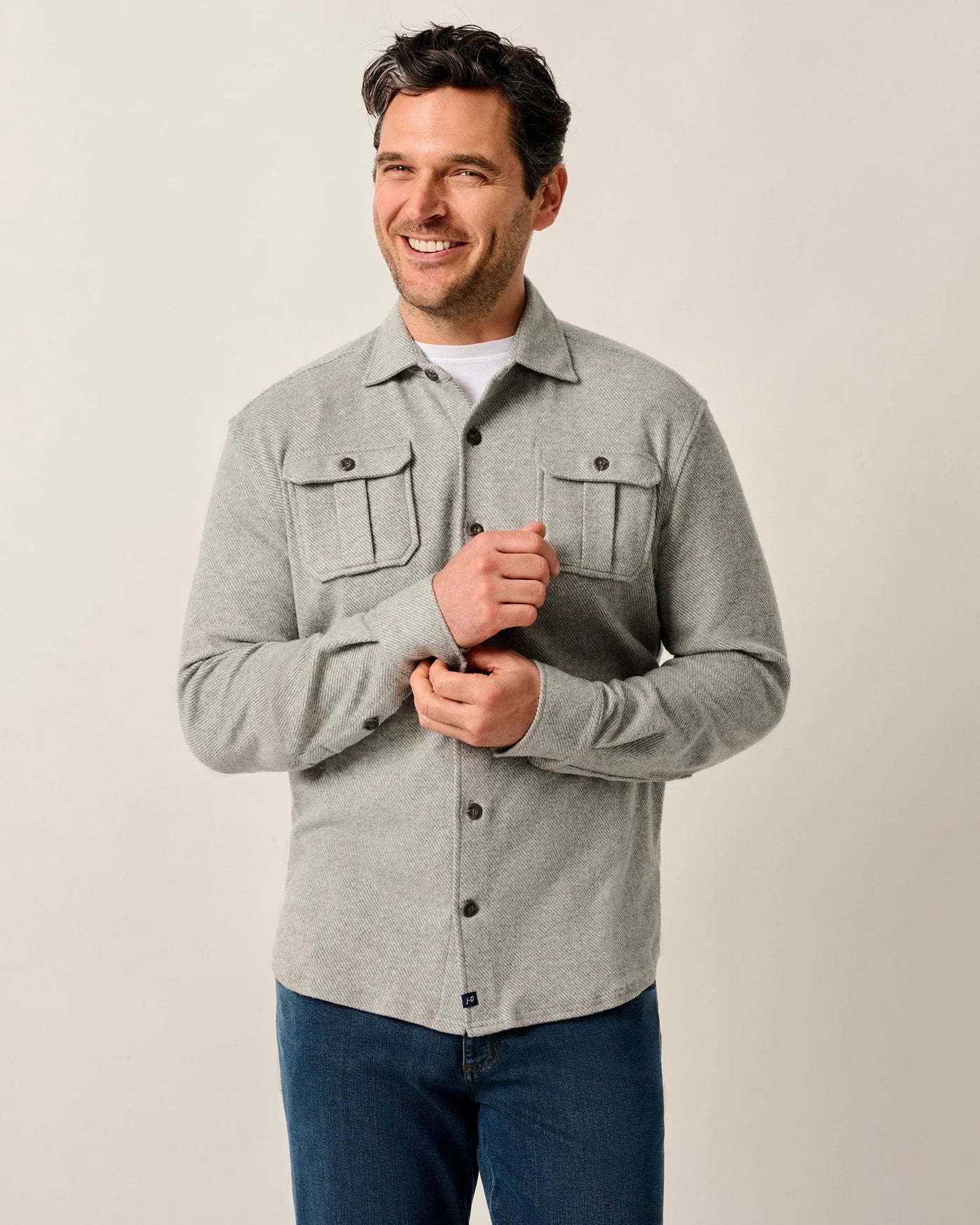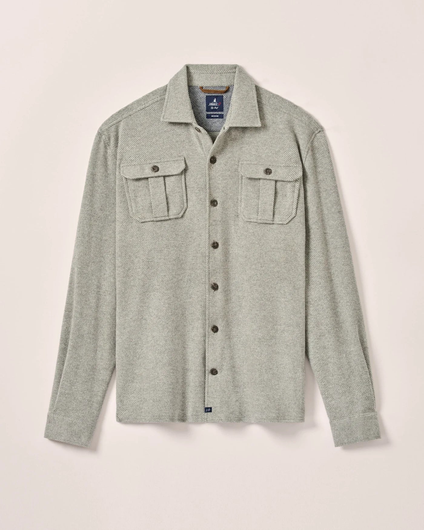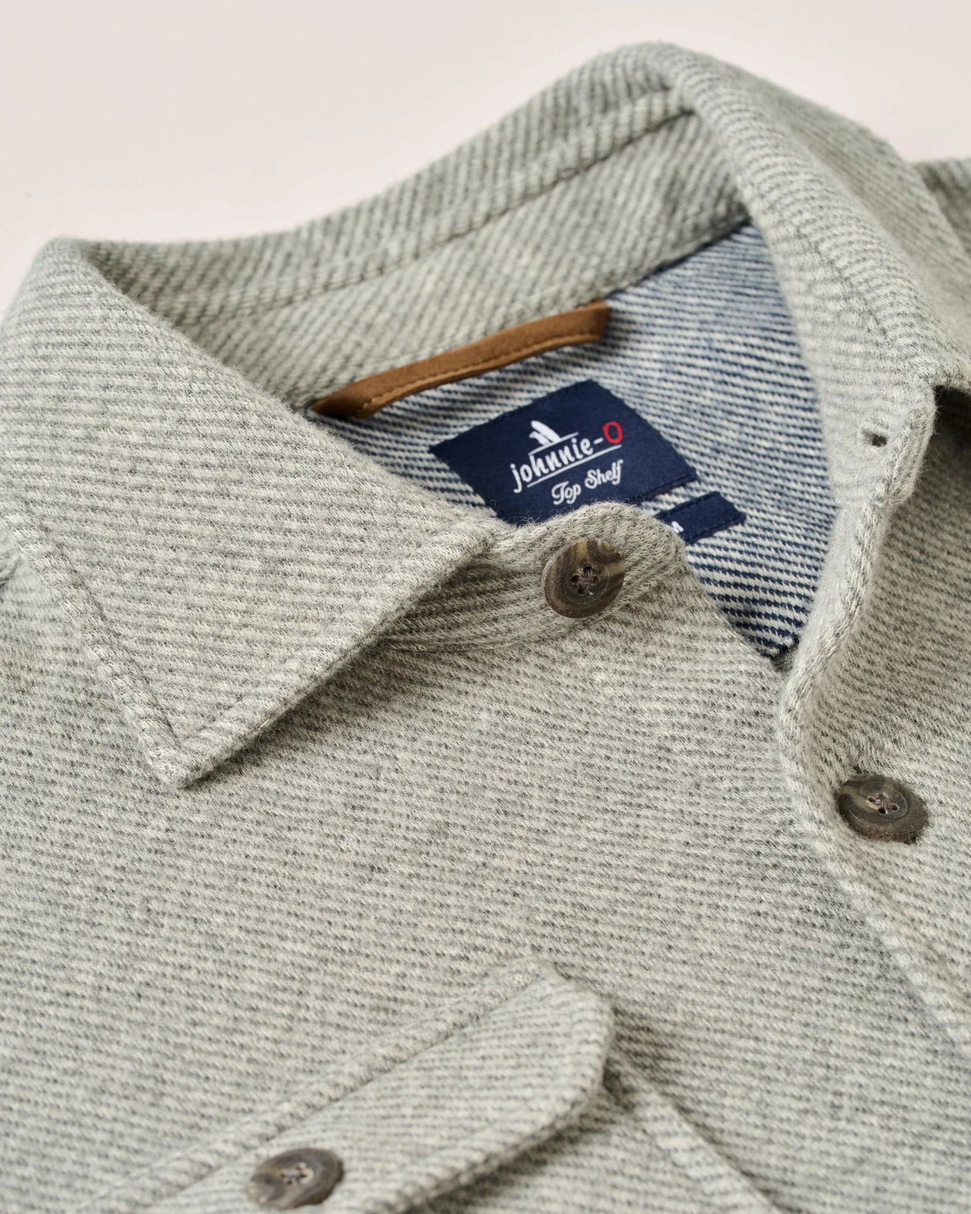 The Carl Shacket in Light Grey by Johnnie O combines the cozy appeal of a favorite Lodge Shirt with the versatility of a lightweight jacket. Knitted from soft, stretchy flannel, it keeps you warm without any itch, while its Light Grey hue pairs effortlessly with nearly everything in your wardrobe. Perfect for layering or wearing solo, this Johnnie O shacket is a go-to piece for casual style, everyday comfort, and seasonal layering.