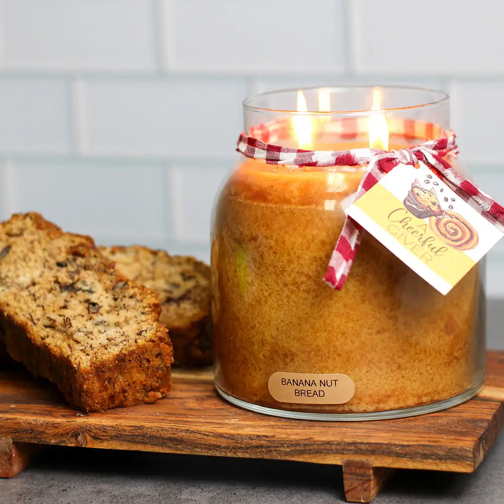 Immerse your space in the irresistible aroma of the 34oz Banana Nut Bread Candle. This generously sized candle features a rich blend of banana rum, cinnamon, clove, nutmeg, and hazelnut, filling your home with the comforting scent of freshly baked goodness. Crafted with care in the USA, this strong-scented candle offers extended burn time and a warm, inviting atmosphere—perfect for cozy evenings and festive gatherings.