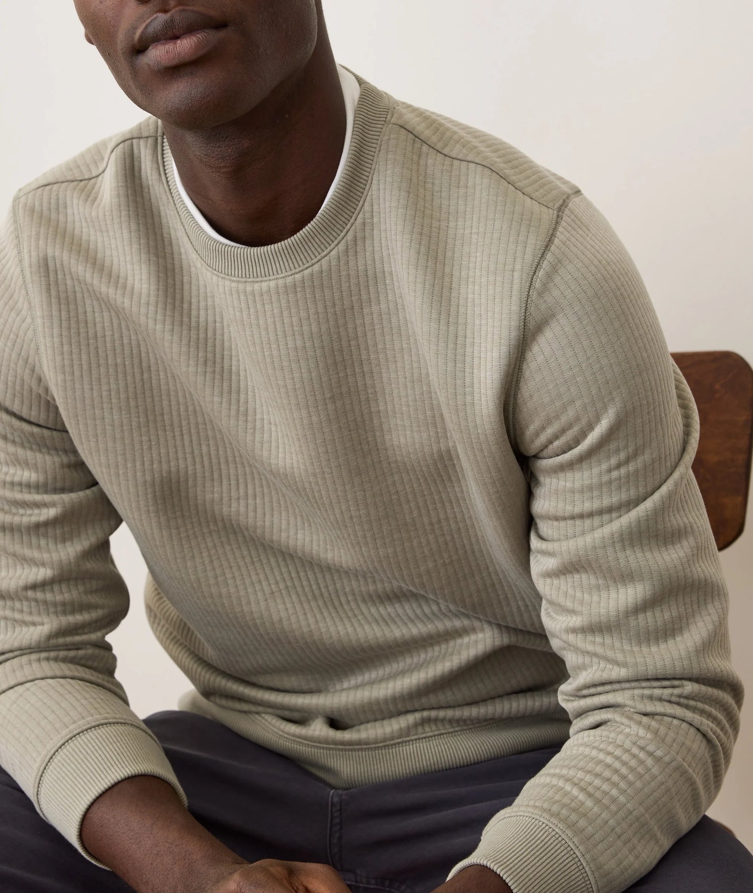 The Corbet Quilted Crewneck in Taupe by Marine Layer is a cozy, elevated staple made from soft, Vertical Quilted Corbet fabric with light insulation for just-right warmth. With its clean, structured look and easy fit, it’s perfect for those in-between days when you want comfort without a jacket. A versatile essential for layering season to season.