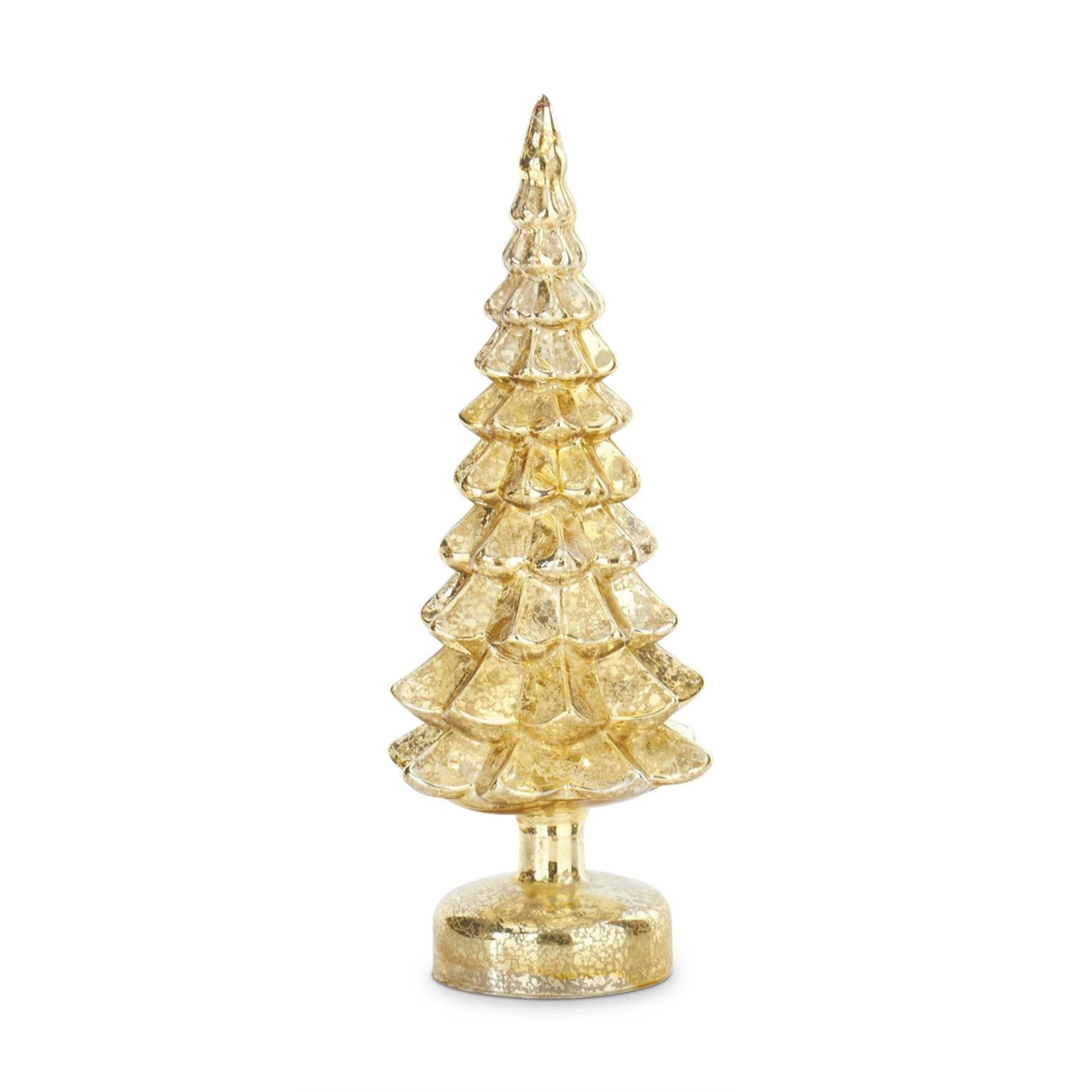Add a warm, festive glow to your home with the Gold LED Mercury Glass Tree, perfect for Holiday 2025. Available in three sizes, each tree features a shimmering gold finish and soft LED lighting. Powered by 3 AA batteries with a 6-hour on / 18-hour off timer, they offer effortless, cordless ambiance—ideal for creating a cozy, elegant holiday atmosphere.