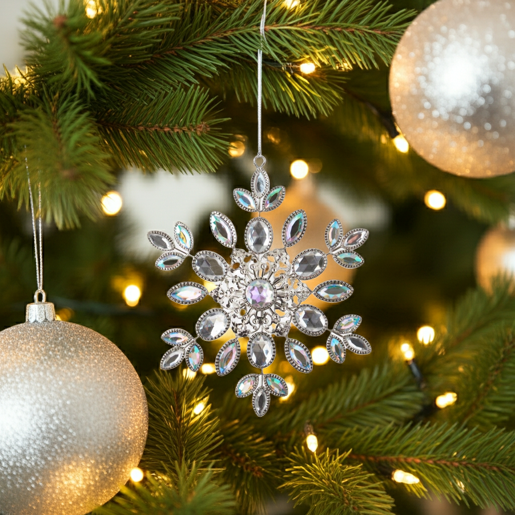 Add sparkling elegance to your holiday decor with the Iridescent Rhinestone Snowflake Ornament, a stunning addition for Holiday 2025. Featuring intricate snowflake design and shimmering rhinestones, the Iridescent Rhinestone Snowflake Ornament catches the light beautifully, adding brilliance to your Christmas tree decorations. This radiant holiday decoration brings a touch of winter magic to any festive display.