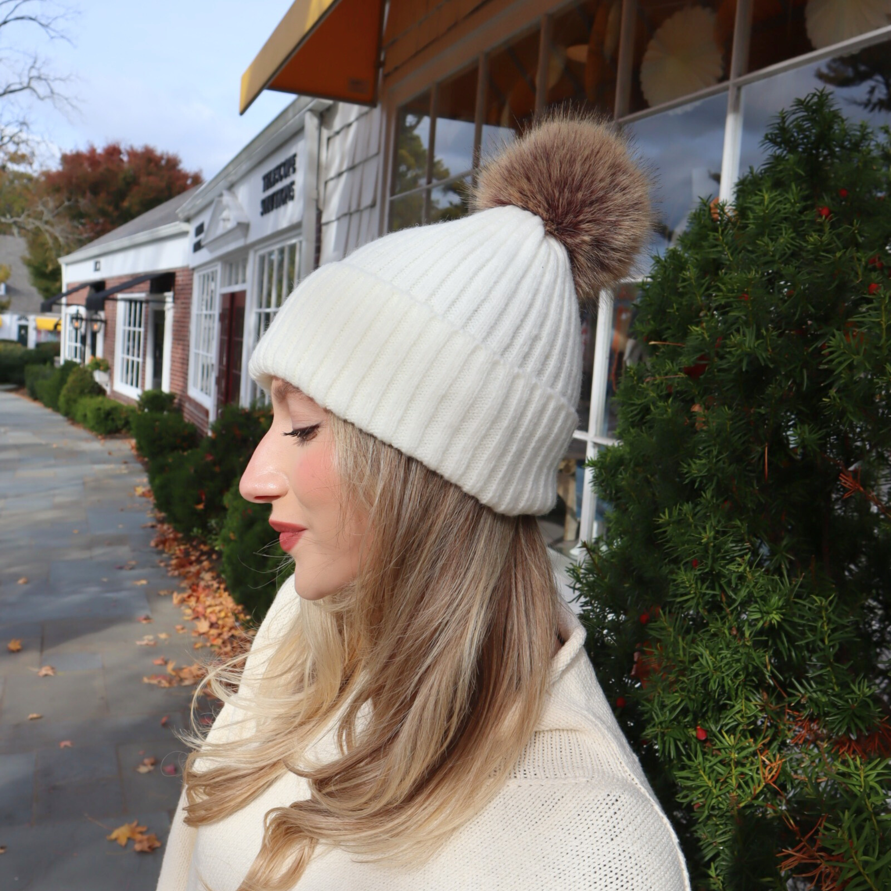 Jennifer Pom Beanie in Cream by Madison’s Niche — cozy charm with a playful twist. Featuring a soft pom detail and warm knit construction, this beanie keeps you snug while adding a chic, whimsical touch to any outfit. The elegant cream hue makes it a versatile winter accessory and a perfect holiday 2025 gift.