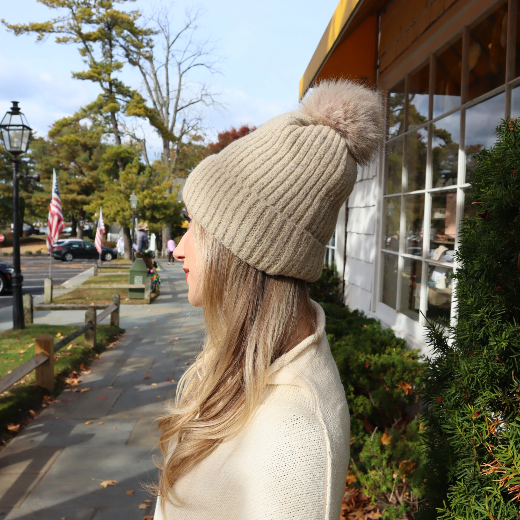 Jennifer Pom Beanie in Taupe by Madison’s Niche — playful warmth meets effortless style. Featuring a soft pom detail and cozy knit, this beanie keeps you snug while adding a charming, fashionable touch. The versatile taupe hue pairs beautifully with any winter wardrobe, making it a stylish winter accessory and a delightful holiday 2025 gift.