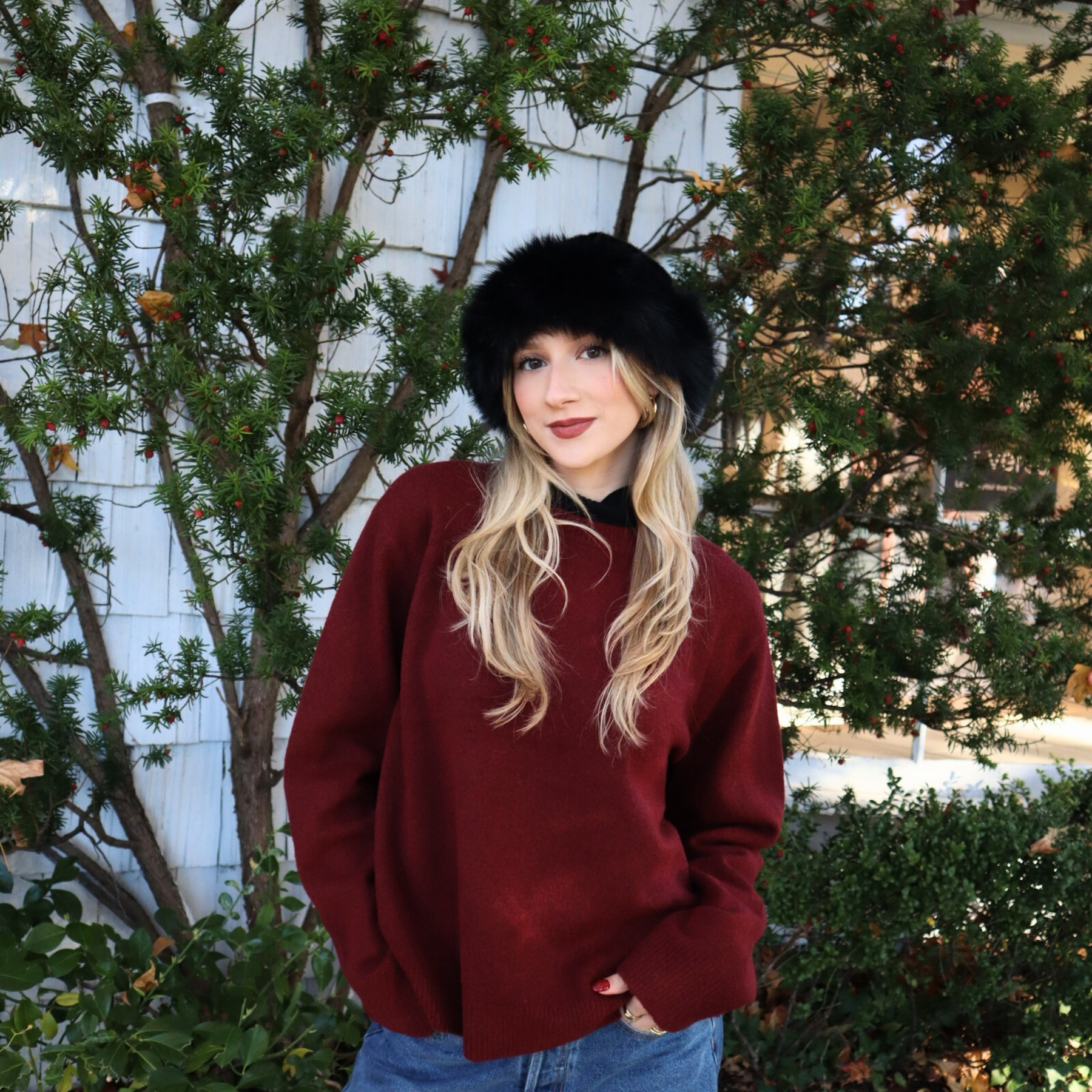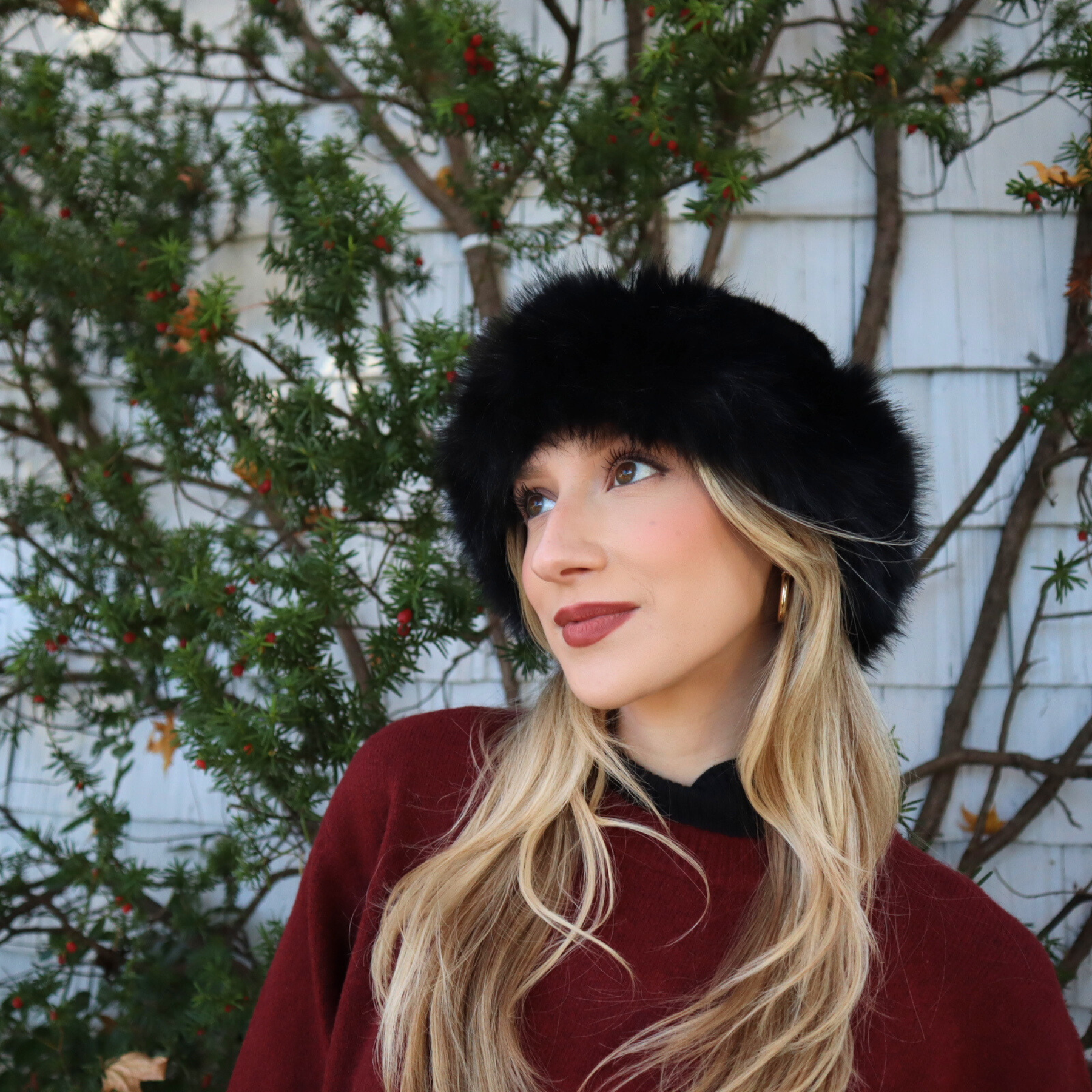 The Kaleigh Dome Hat in Black by Madison's Niche is the perfect blend of elegance and warmth. Crafted from luxurious faux fur, this winter hat offers cozy comfort with a timeless, refined look. Whether you're dressing up or keeping it casual, its classic design makes it a must-have accessory for cold-weather style.