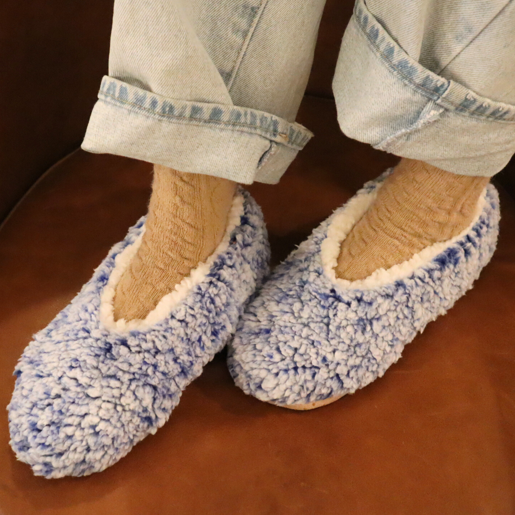 Kelsy Slippers in Blue by Madison’s Niche — a serene blend of comfort and style. Made with a thickened fleece lining, these comfortable house slippers keep your feet warm and relaxed all season long. The fabric sole ensures a quiet, cushioned step, perfect for peaceful moments at home. In a calming blue hue, these indoor warm home shoes add effortless elegance to your holiday 2025 lounging essentials.