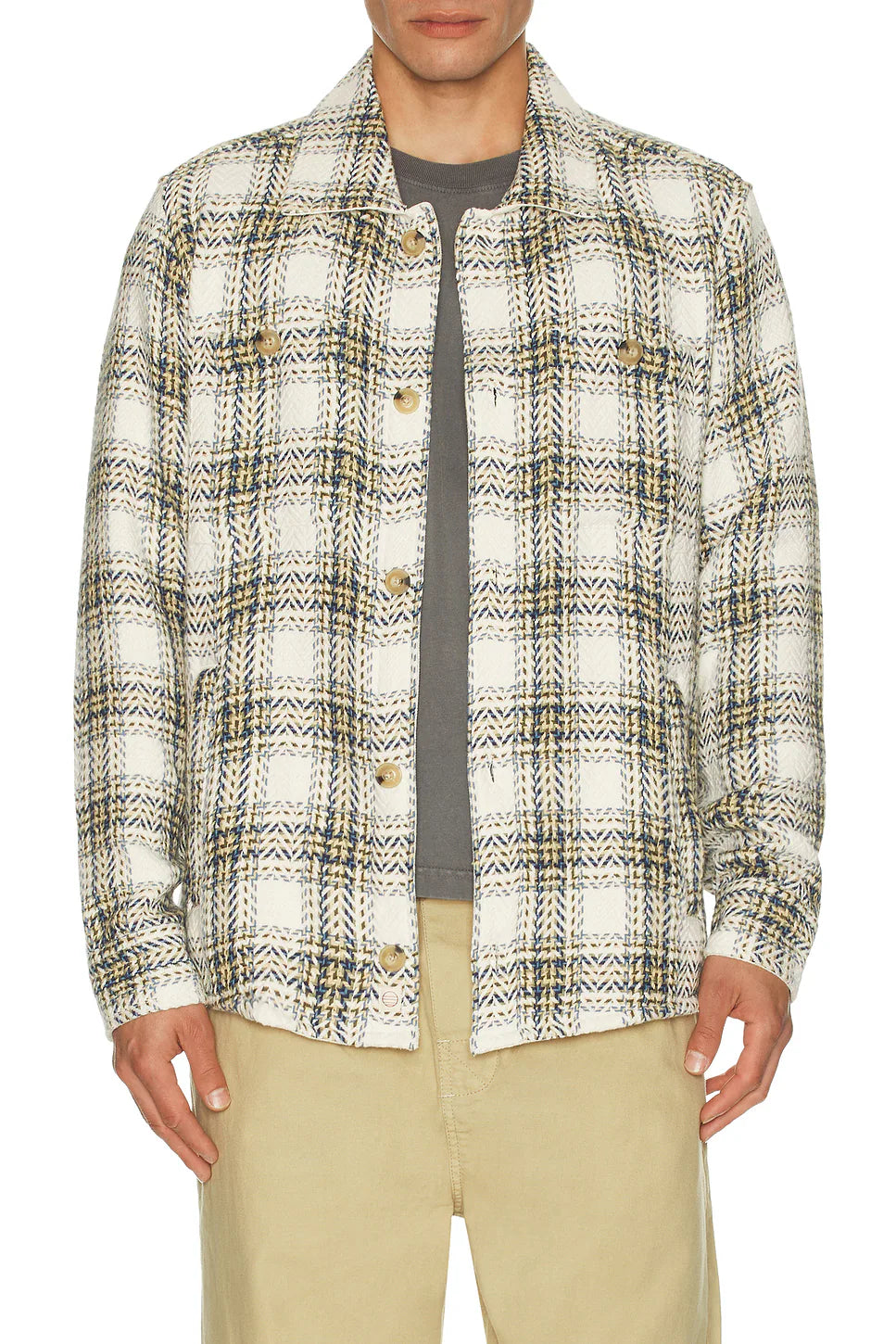 The Max Herringbone Overshirt by Marine Layer is a versatile men’s top crafted from midweight twill fabric with a subtle herringbone texture. Designed for layering, it features a front button closure, dual chest pockets, side pockets, and buttoned cuffs for a classic utility look. Equal parts rugged and refined, it’s the perfect go-to for cooler days.