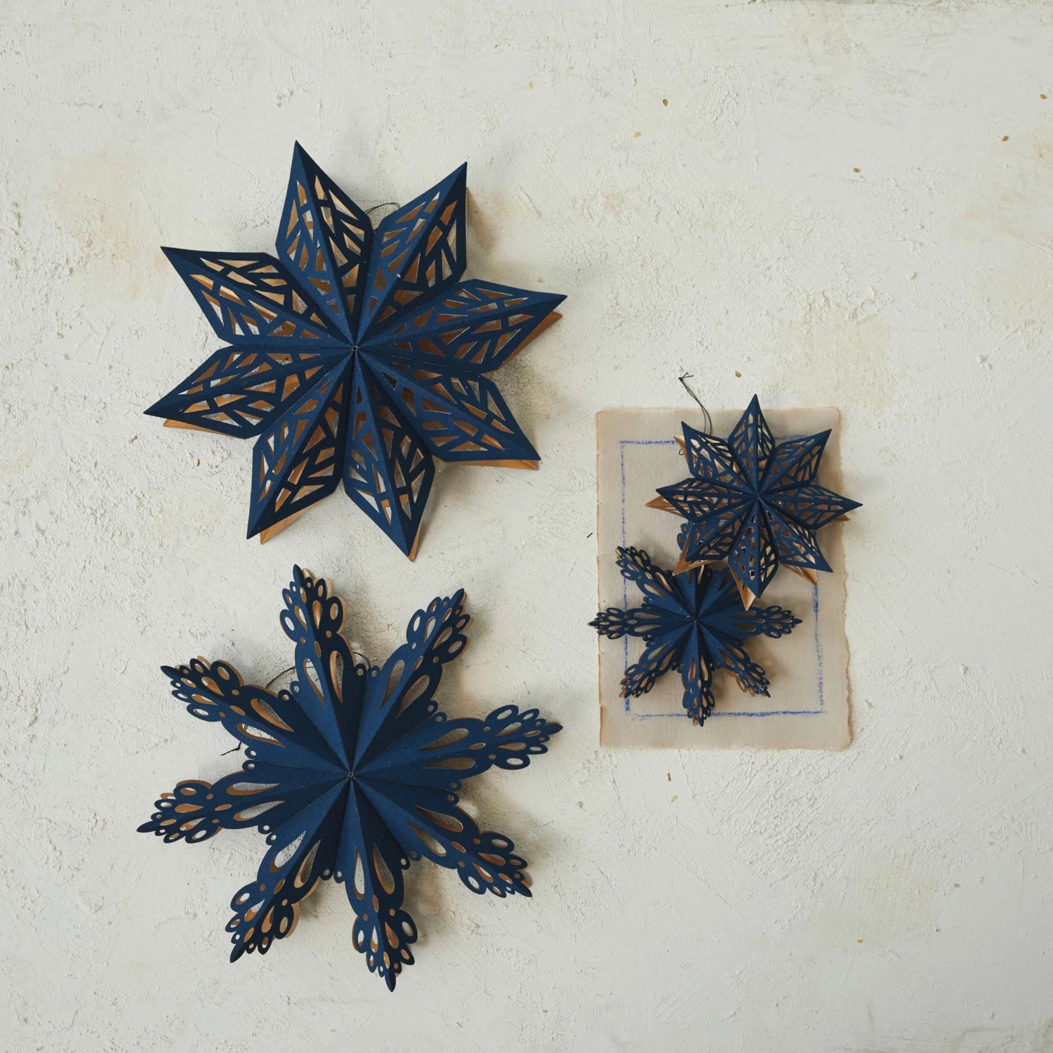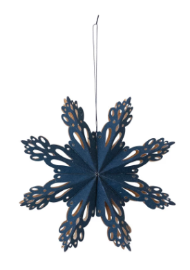 This flocked paper snowflake ornament set is a beautiful and eco-friendly way to add some sparkle and elegance to the home. The set includes 2 snowflake ornaments in navy and gold colors, each with a flocked texture that gives them a soft and fluffy look. The ornaments have a string loop for easy hanging. Decorate the wall, ceiling, or Christmas tree, or use them as a centerpiece for the table as this ornament set will bring a touch of beauty and sophistication to any space. It also makes a great gift for friends and family who love snowflakes.