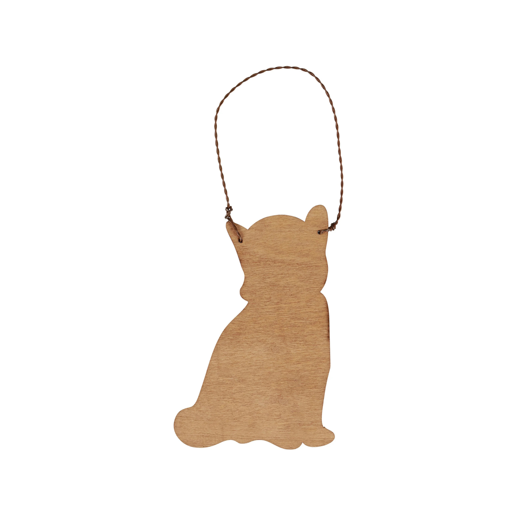 Bring holiday cheer with the Orange Cat Santa Ornament from our Christmas Collection. Crafted from wood and inspired by original burlap artwork, it features a playful orange cat wearing a Santa hat, complete with charming distressed details. Ready to hang with the attached twisted wire, this ornament is a delightful holiday gift and a festive addition to any Christmas tree.