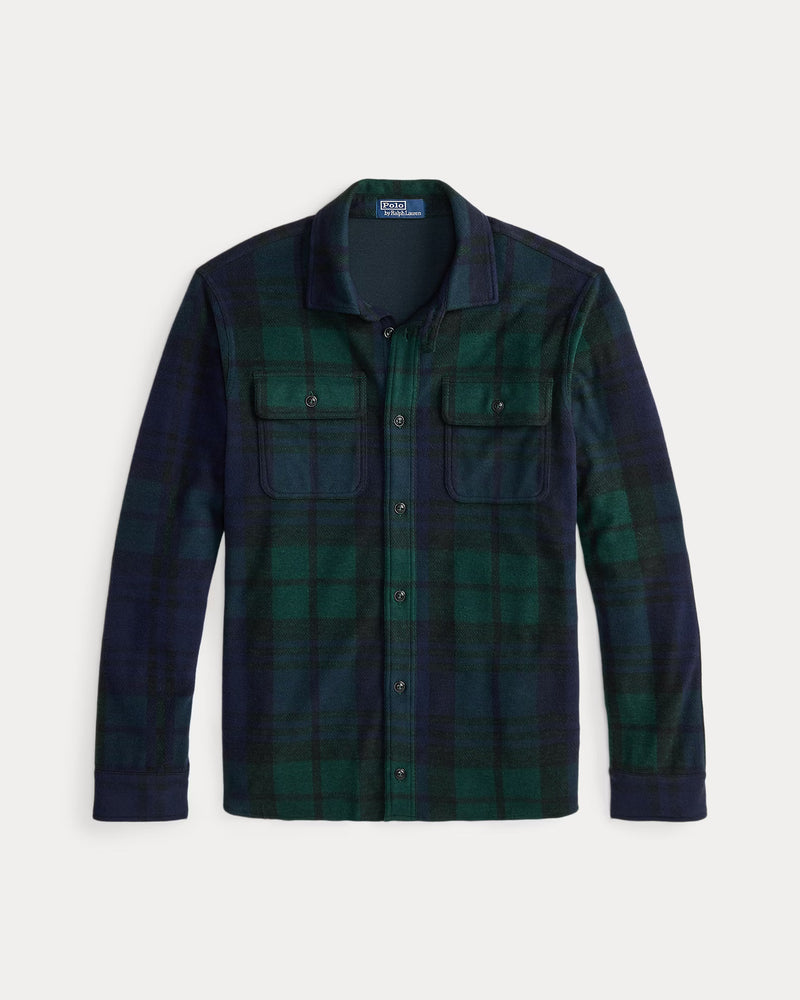 The Plaid Knit Flannel Overshirt in Green by Ralph Lauren offers the look of classic flannel with the comfort of a knit. Crafted from a stretch-infused fabric, this green plaid overshirt provides ease of movement while maintaining a rugged, timeless style. Perfect for layering, it’s a versatile essential for cooler days and casual outings.