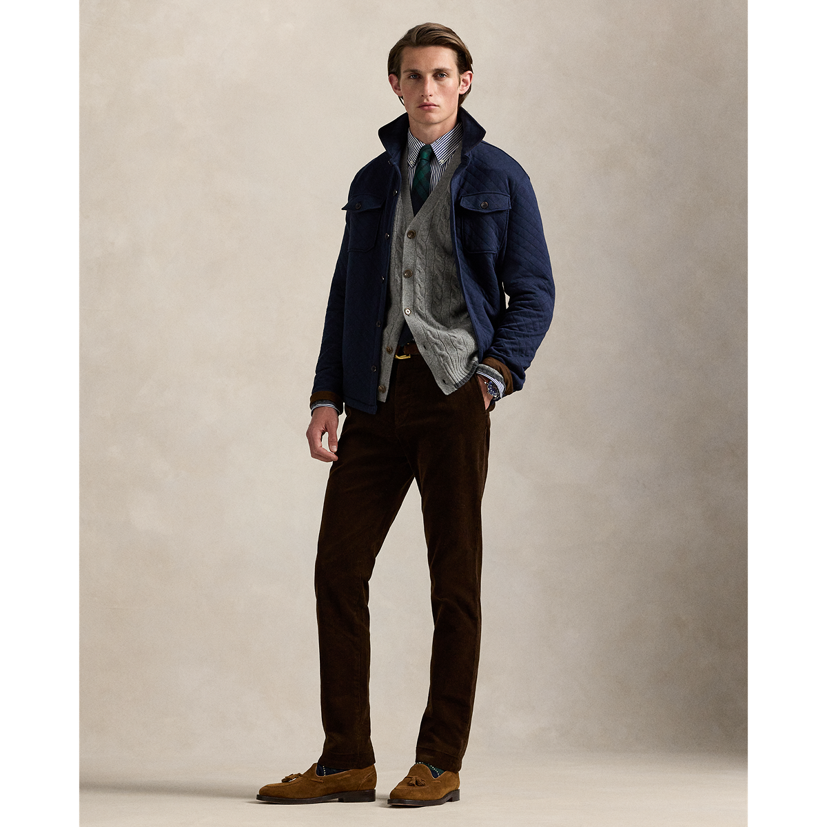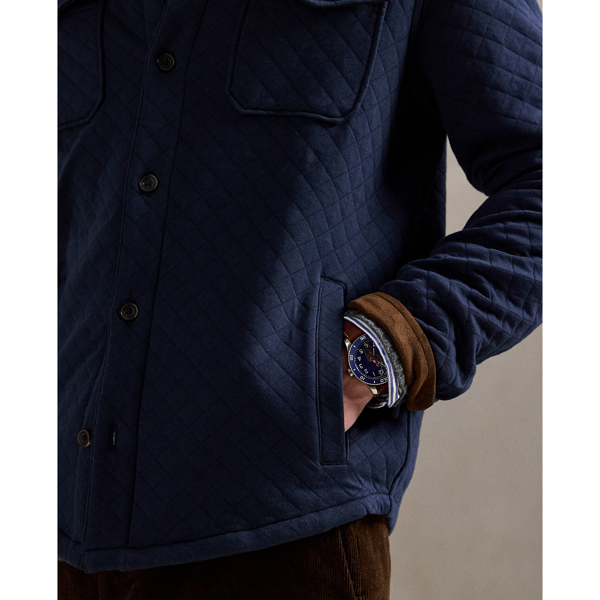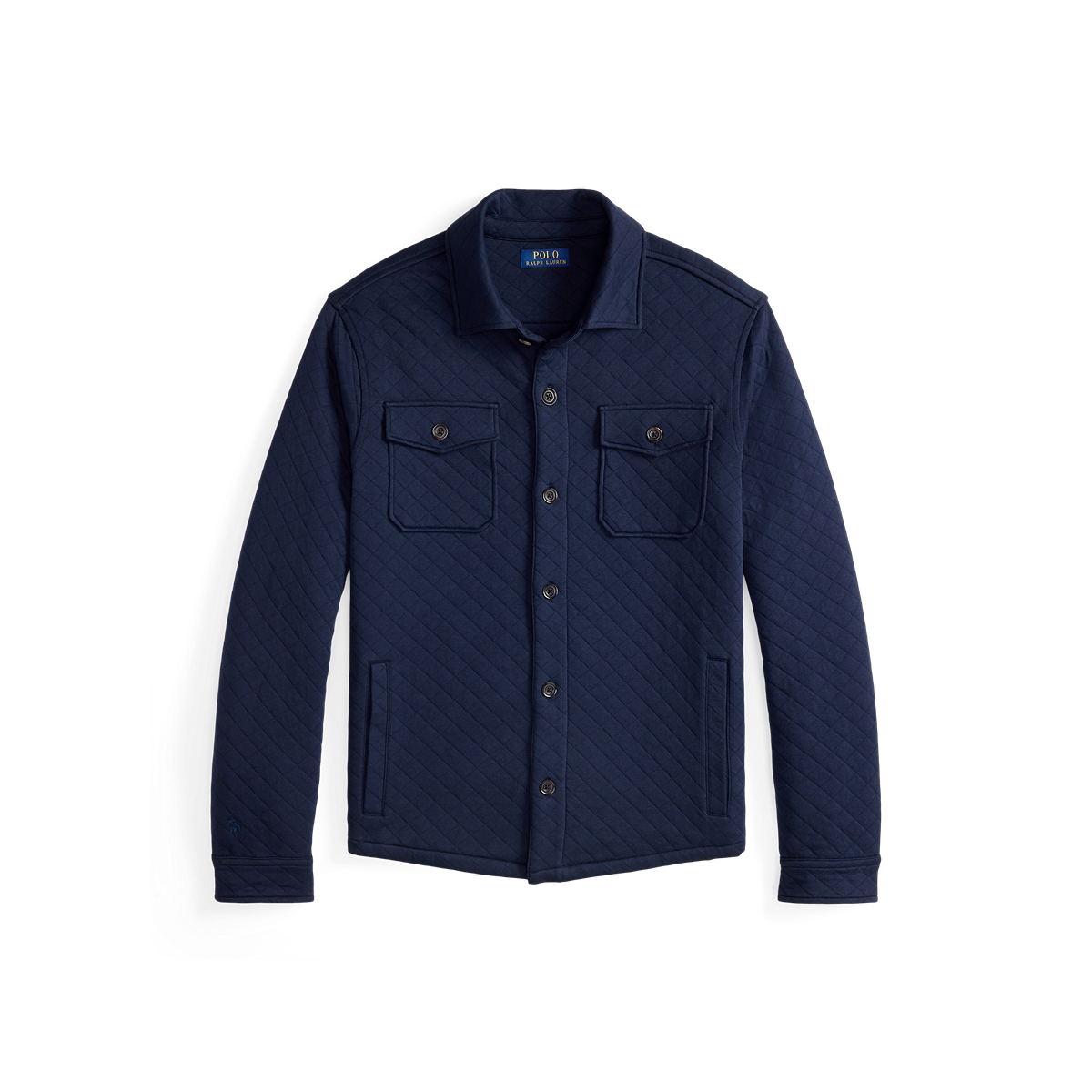 The Quilted Shirt Jacket in Navy by Ralph Lauren blends rugged function with refined style for essential men’s fall layering. Designed with a micro-diamond quilt pattern, this shirt jacket is crafted from ultra-soft double-knit jersey, insulated for warmth, and finished with rich faux-suede trim—a perfect balance of comfort, texture, and classic Polo Ralph Lauren detail.