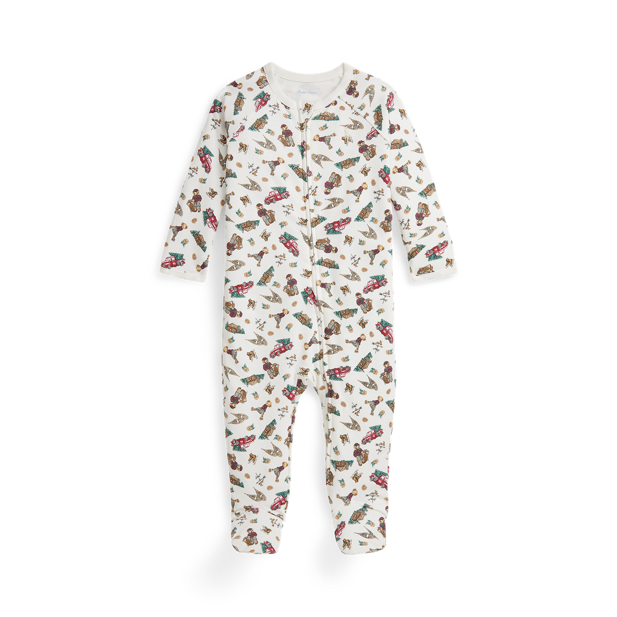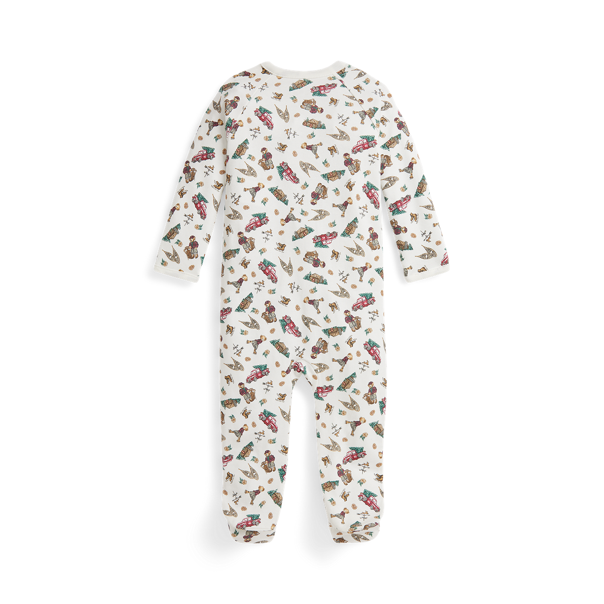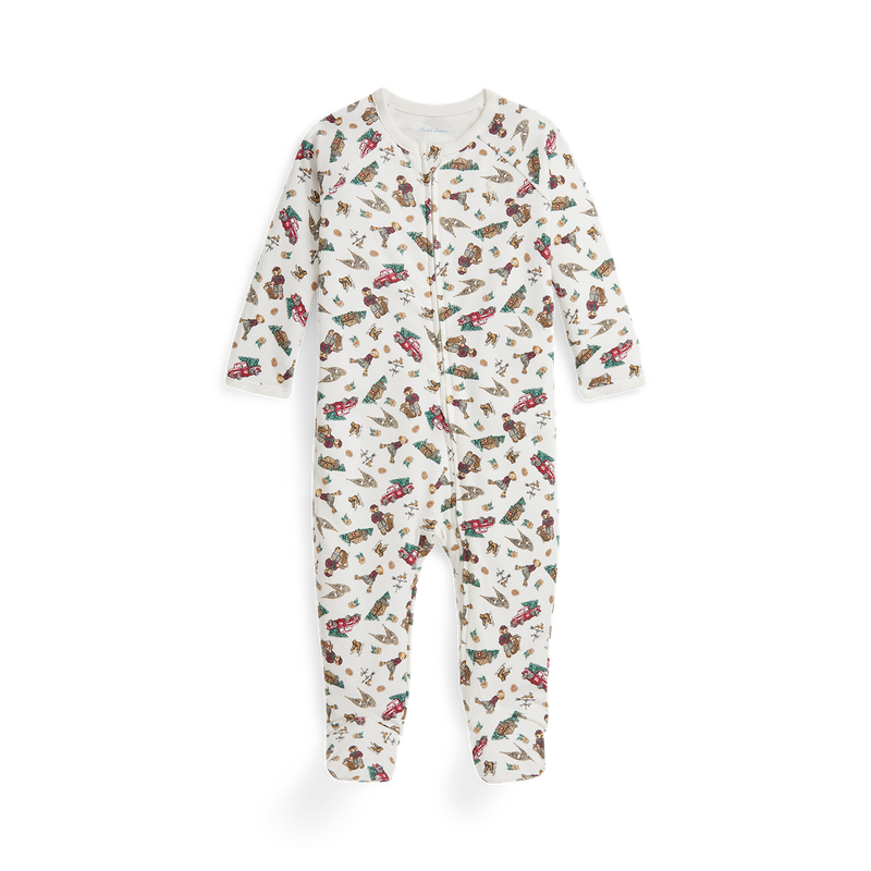 The Holiday Bear Zip Coverall by Ralph Lauren is a cozy seasonal essential for your little one. Made from soft cotton interlock, this one-piece features an allover print of the beloved Polo Bear enjoying cold-weather activities, bringing playful charm to any winter day. With its easy zip-front design, this holiday baby coverall combines comfort, style, and convenience—perfect for sleep, play, or festive moments.