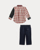 The Plaid Fun Shirt & Stretch Chino Pant Set by Ralph Lauren is a smart, playful ensemble designed with comfort in mind. The plaid cotton poplin shirt features enhanced flexibility for easy movement, while the stretch chino pants offer a tailored look with everyday ease. Perfect for holidays, family photos, or casual outings, this baby outfit set delivers timeless Ralph Lauren style with a modern, kid-friendly twist.
