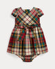 The Plaid Twill Dress & Bloomer by Ralph Lauren is a festive wardrobe classic for the season. Made from soft yarn-dyed cotton twill, this charming dress features a timeless plaid motif and a coordinating grosgrain sash for an elegant finish. Complete with a matching bloomer, it’s the perfect holiday baby dress for special occasions, family gatherings, and timeless photos.