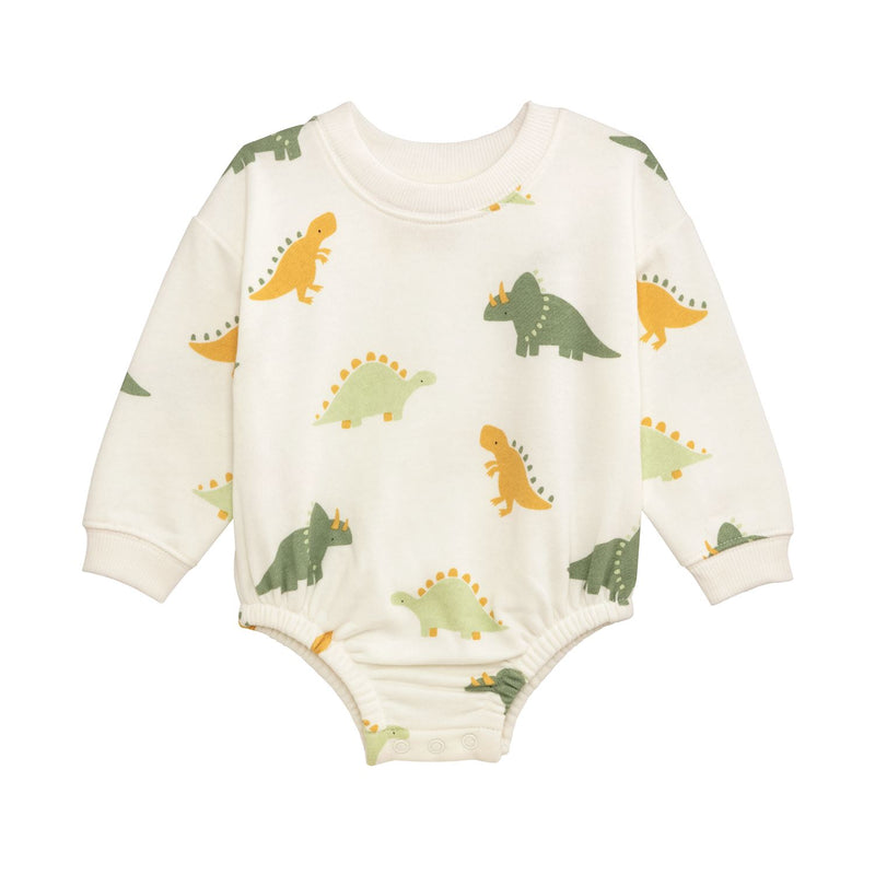Keep your little one cozy and cute with the Dino Baby Sweatshirt Bubble – Holiday 2025. Made from soft brushed French terry, this adorable baby outfit features a playful dino design, cotton rib trim for a snug fit, and inner leg snaps for easy diaper changes. Perfect for everyday wear or as a fun holiday baby gift, it combines comfort, function, and festive charm.
