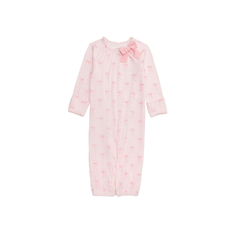 Wrap baby in sweet, classic style with the Pink Gingham Bow Gown, a charming essential for baby girl clothing. This baby gown features a timeless gingham pattern accented with delicate bow detailing, blending cozy comfort with adorable design. Perfect for sleep, lounging, or gifting, this gingham baby gown adds a touch of softness and style to everyday moments.