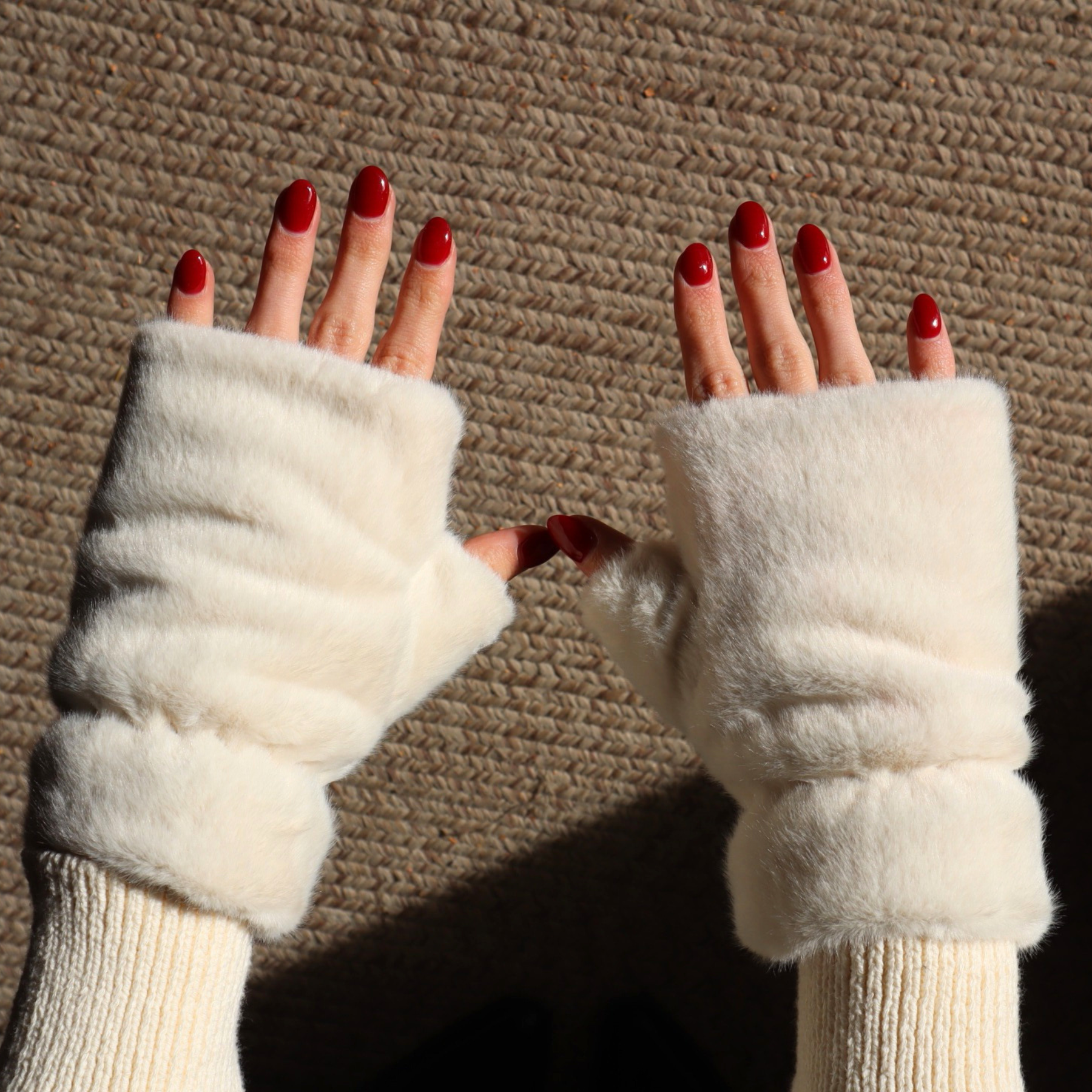 Fingerless Faux-Fur Mittens in Ivory by Madison’s Niche — stylish warmth with effortless functionality. Crafted with soft faux-fur, these fingerless mittens keep your hands cozy while allowing full mobility for texting, typing, or daily tasks. The elegant ivory hue adds a chic, versatile touch to any winter outfit. Perfect for staying warm and fashionable this holiday 2025 season.