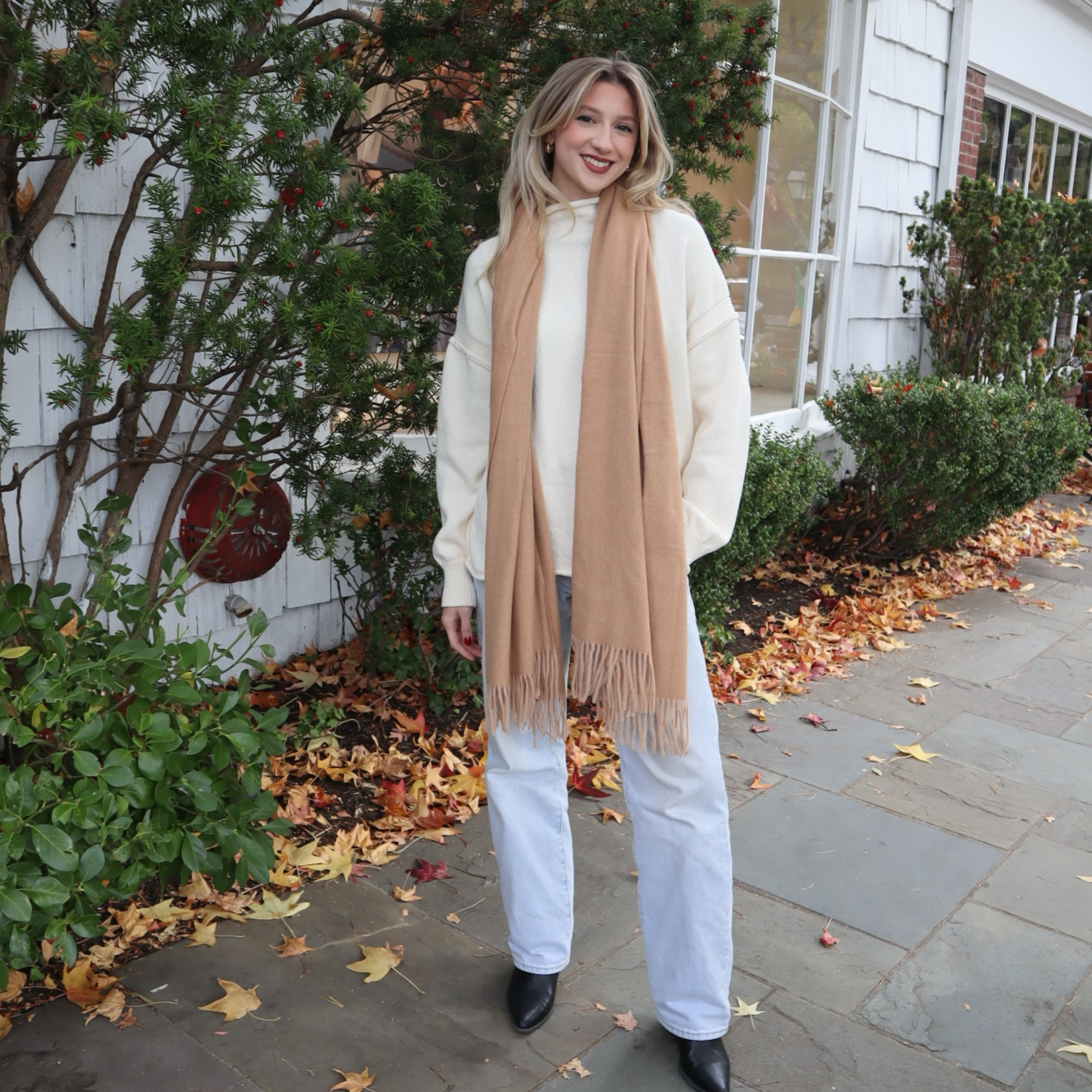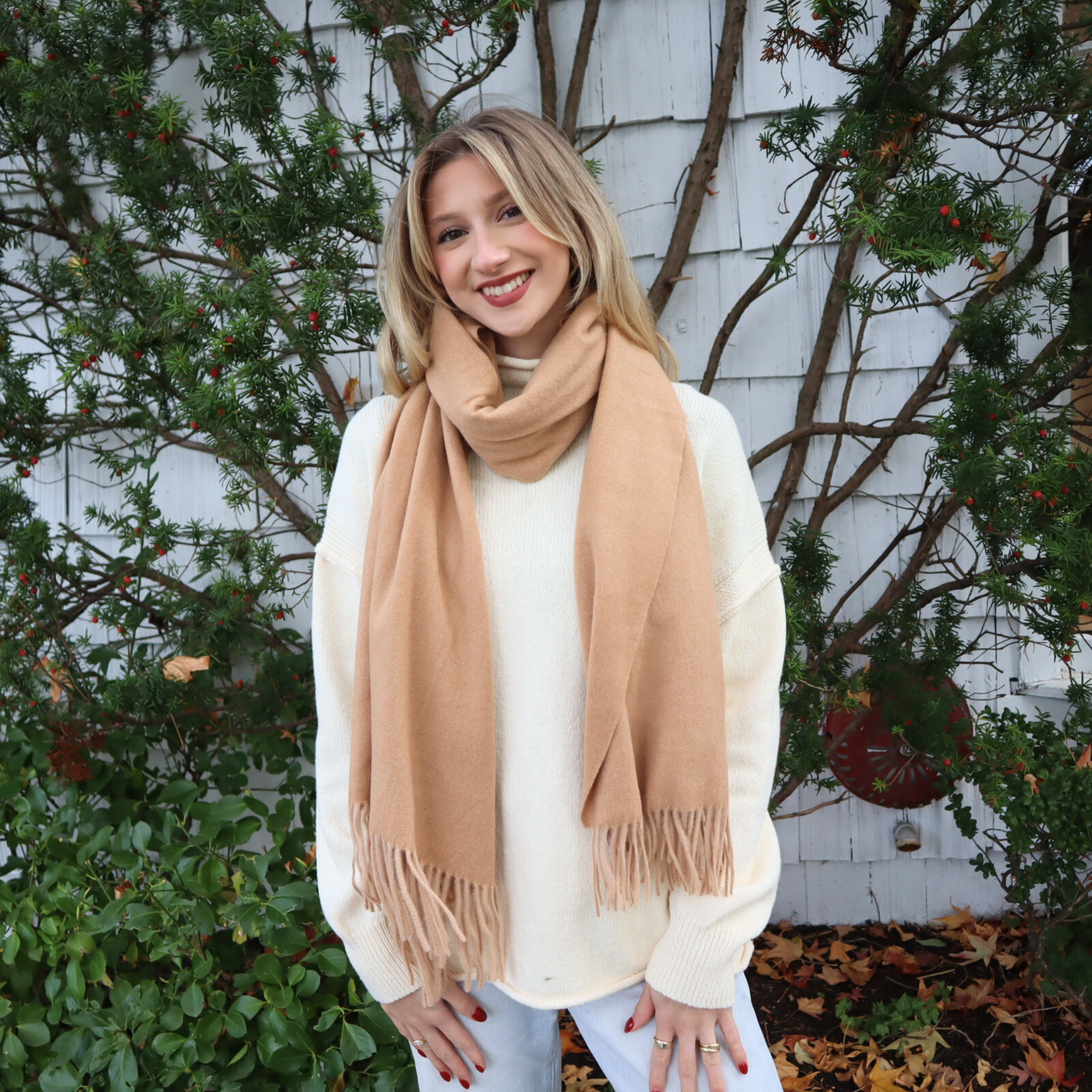Lottie Scarf in Camel by Madison’s Niche — elevate your winter style with effortless sophistication. This soft scarf wraps you in cozy warmth while the warm camel hue adds a refined, versatile touch to any outfit. A timeless winter accessory that enhances everyday elegance and makes a perfect holiday 2025 gift.