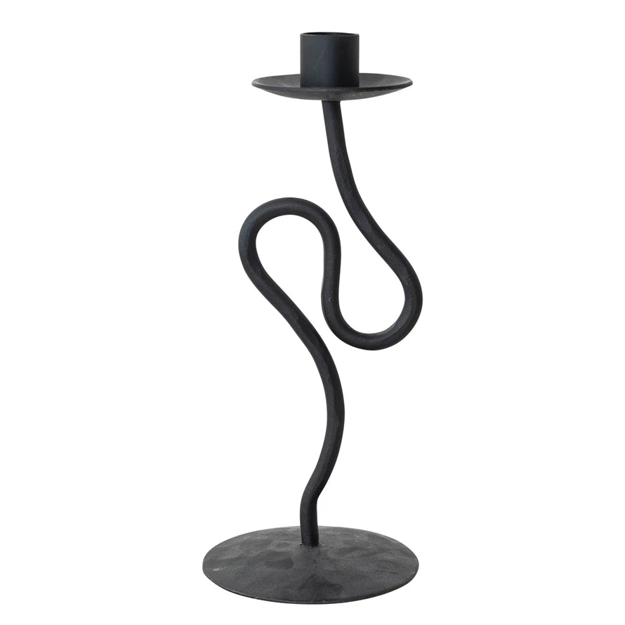 Add bold elegance to your space with the Large Abstract Taper Holder, a striking hand-forged iron taper holder in sleek black. Its sculptural, abstract design makes it a captivating centerpiece for dining tables, mantels, or shelves. Perfect for home decor, this iron candle holder blends artistic craftsmanship with functional style, elevating any room with a modern, sophisticated touch.