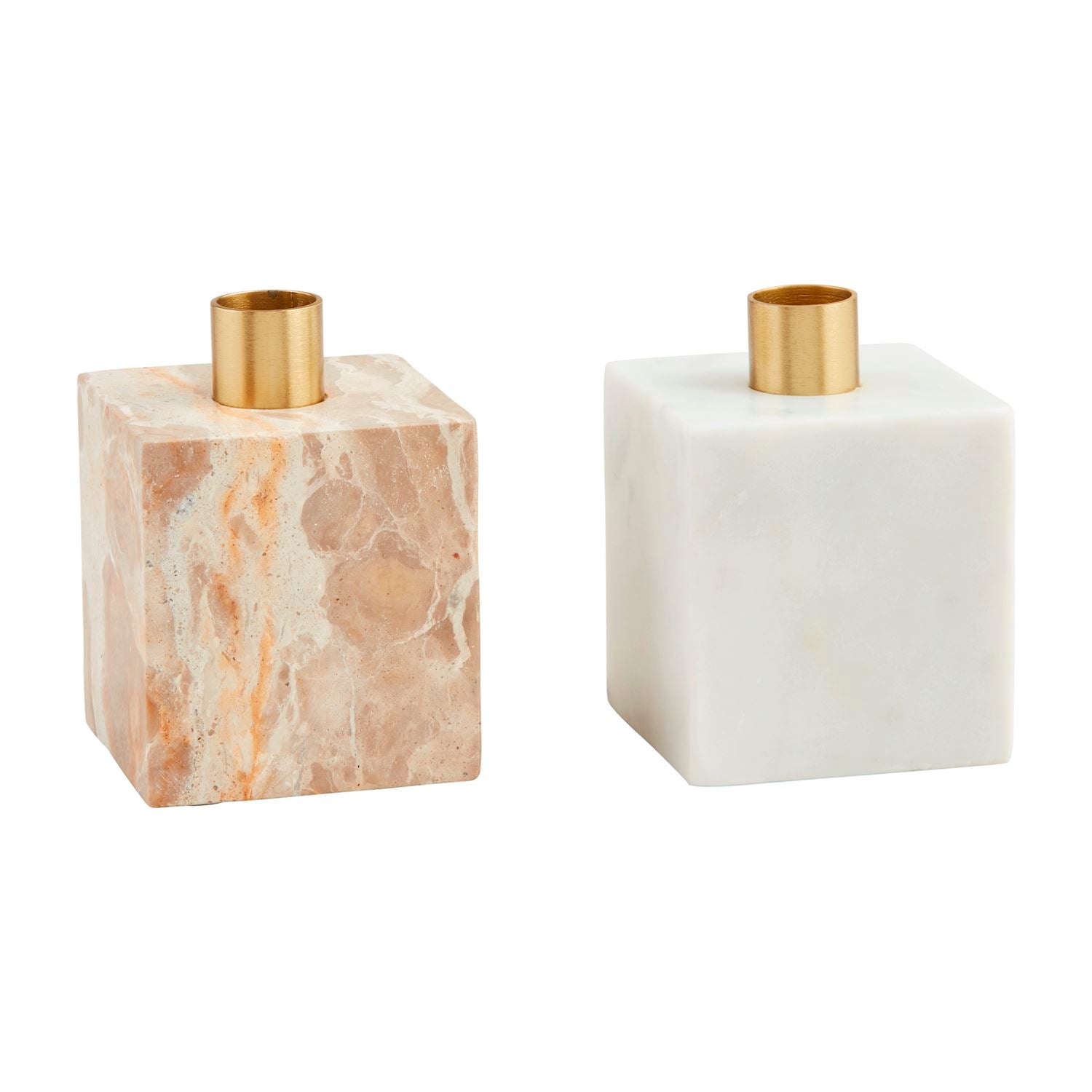 Add warm sophistication to your space with the Tan Marble Taper Holder, a timeless accent for elevated home decor. Crafted from natural tan marble, this marble cube taper holder features unique veining that makes each piece one of a kind and a sleek brass plate insert to securely hold standard taper candles. Measuring 4" x 3", this decorative marble candle holder is compact yet impactful, perfect for styling dining tables, mantels, or side tables while complementing both modern and classic interiors.