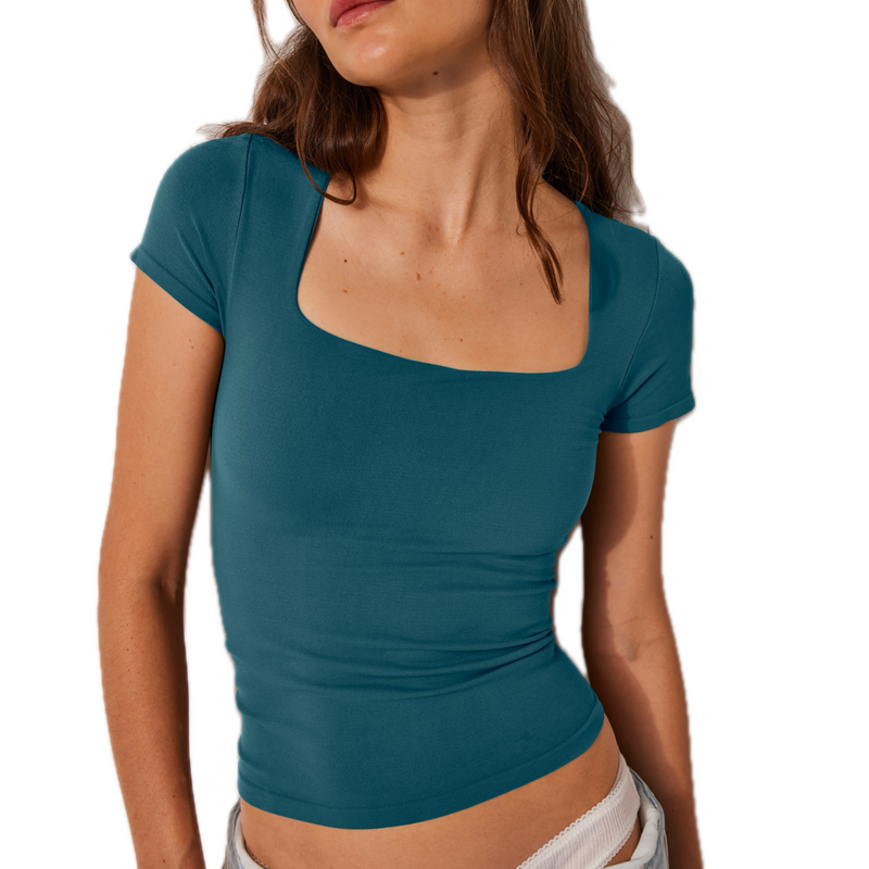 The Sunfade Clean Lines Baby Tee in Still Sea by Free People is your new go-to everyday essential. Part of the beloved seamless collection, this ultra-soft tee features a slim fit, square neckline, and cap-inspired sleeves for a flattering, modern look. With its buttery soft, stretchy feel and seamless design, it’s perfect for layering or wearing solo all fall season long.