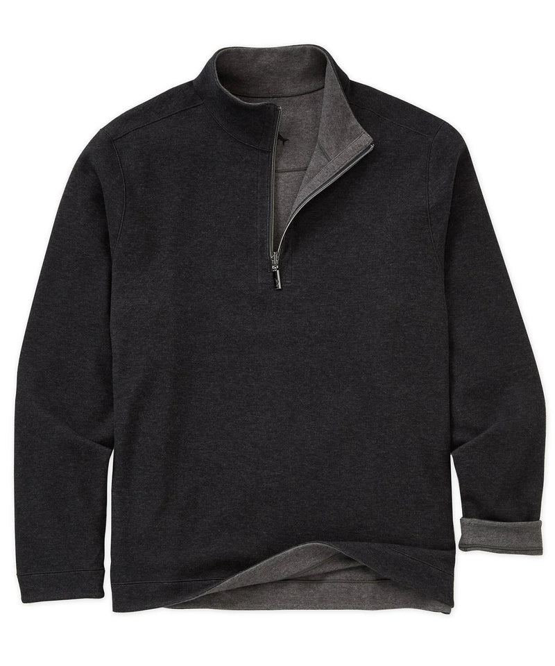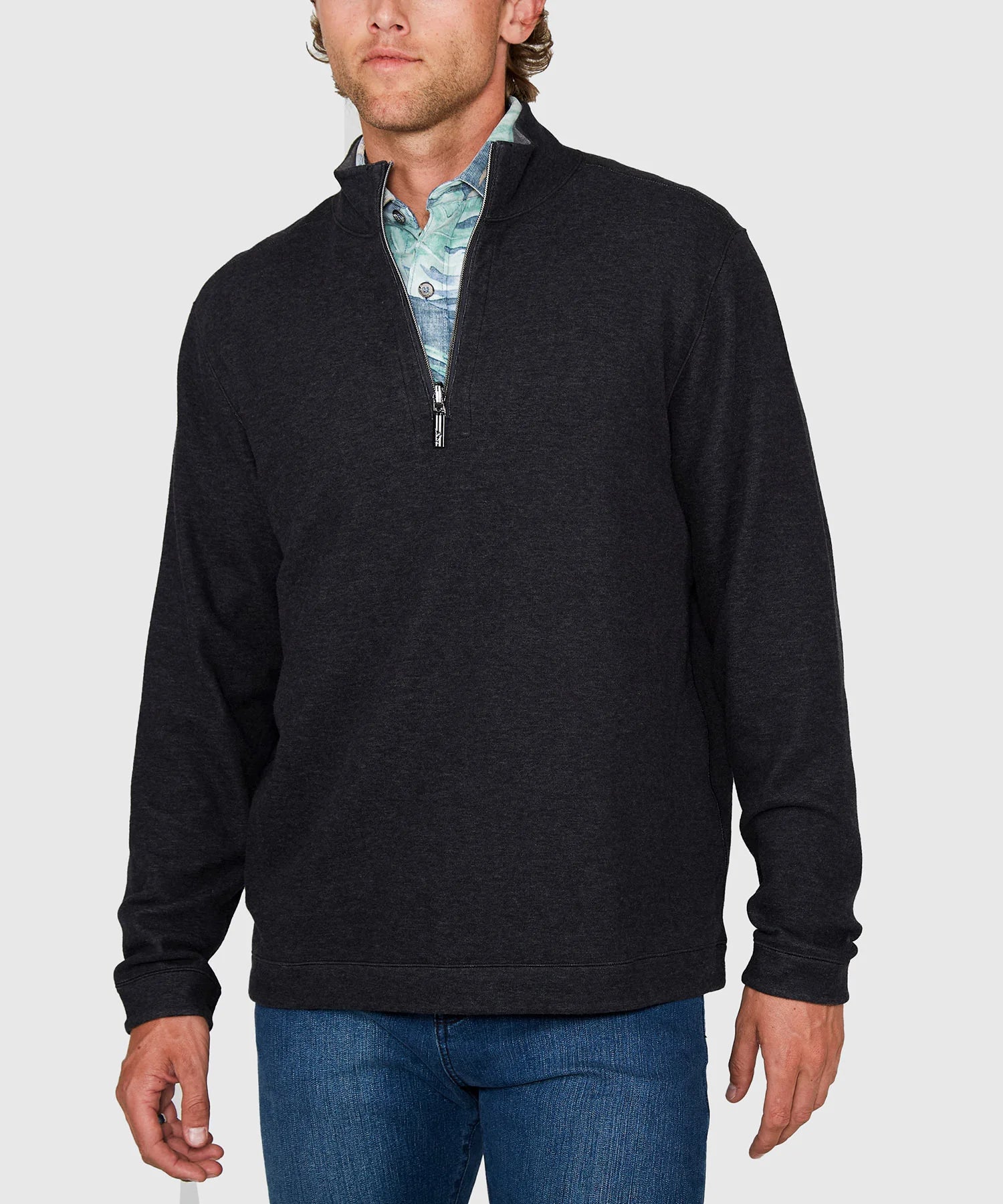 Twice the style, all the comfort—the Flipview Half-Zip Pullover in Black by Tommy Bahama is a fully reversible layer designed for versatility and softness. Crafted with a blend of rich cotton and performance stretch materials, this half-zip pullover delivers all-day comfort with a refined, rugged edge. Coverstitch detailing adds texture, while the reversible design lets you switch up your look effortlessly.