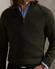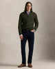The Washable Wool Quarter-Zip Jumper in Olive by Ralph Lauren blends timeless design with everyday ease. Made from fine-gauge worsted wool, this textured-knit men’s sweater offers lightweight warmth and comfort. Featuring a classic mockneck and the iconic embroidered Polo Pony, it’s a polished essential for fall layering and refined men’s style.