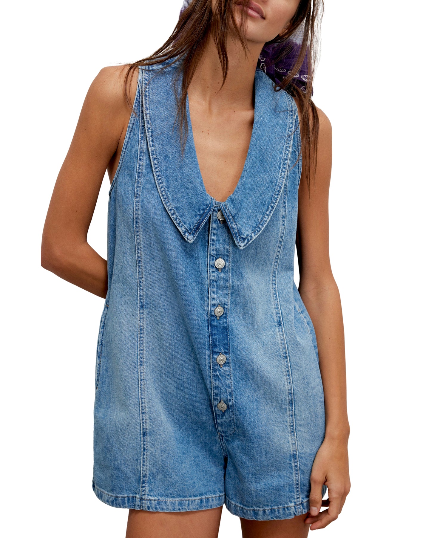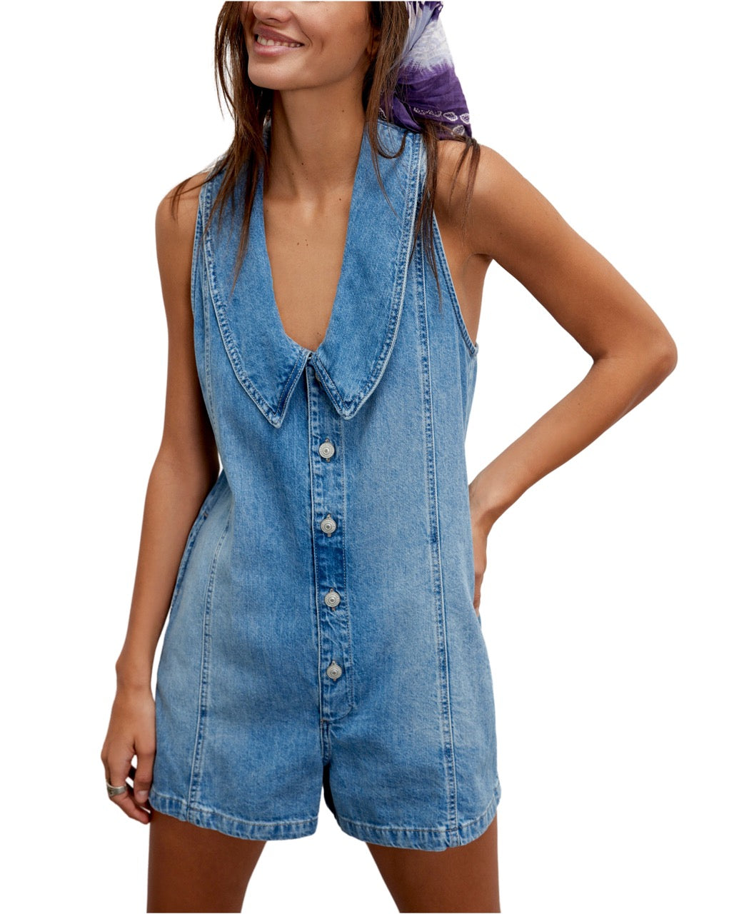 The Dover Playsuit in Candy by Free People is a playful, vintage-inspired essential. This babydoll playsuit features a relaxed, shapeless fit, oversized collar, front button-up closures, and soft rigid denim with a racerback design. Perfect for layering or styling with tall boots or sneakers, this Free People playsuit offers effortless, versatile charm for any occasion.