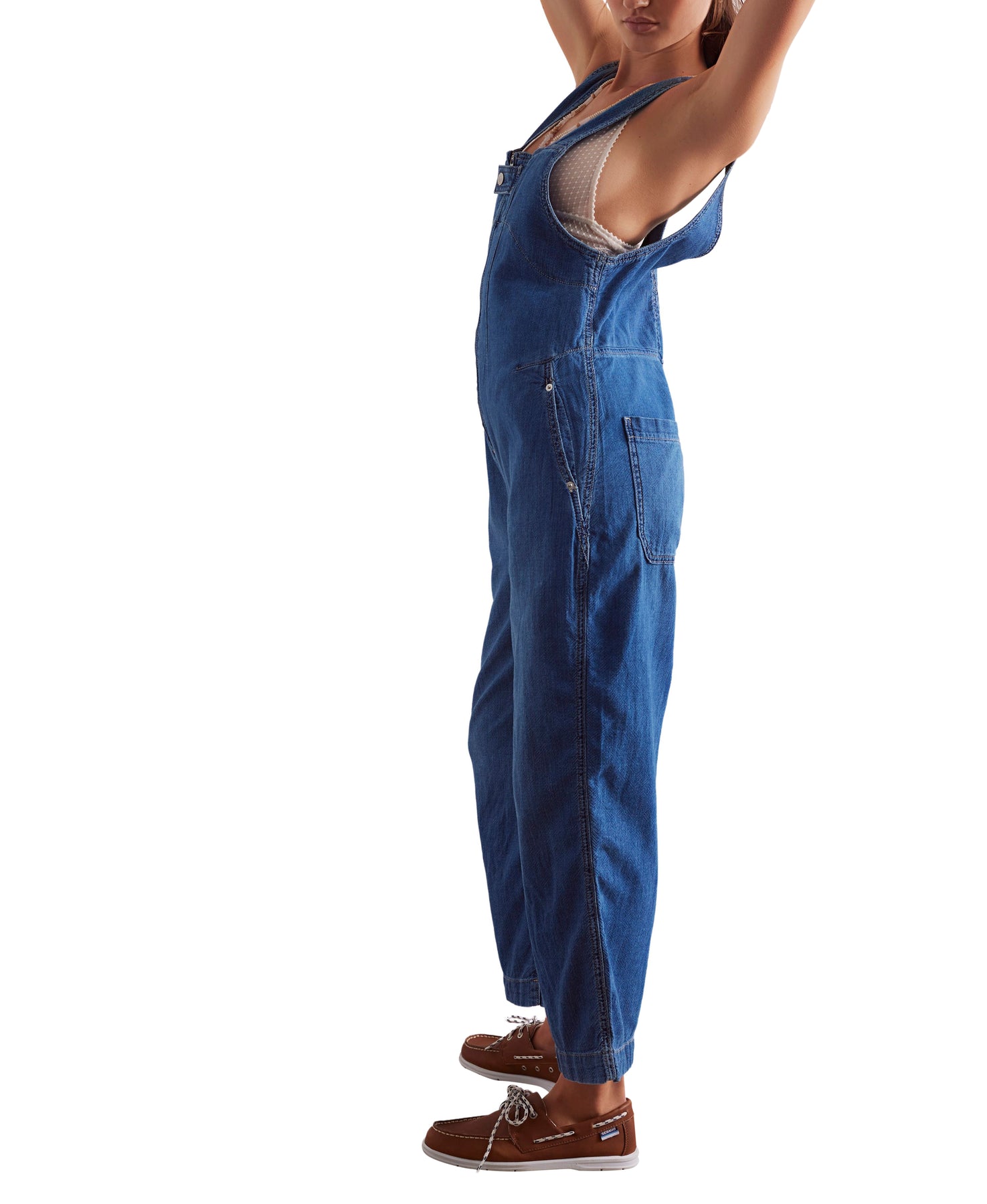 Effortless and versatile, the Jude One-Piece in Mid Indigo by Free People features a pinafore-inspired relaxed fit, square neckline, front zip closure, and four-pocket design in authentic rigid denim. Perfect layered over a cami or worn solo, this denim one-piece is a stylish, easy outfit solution.
