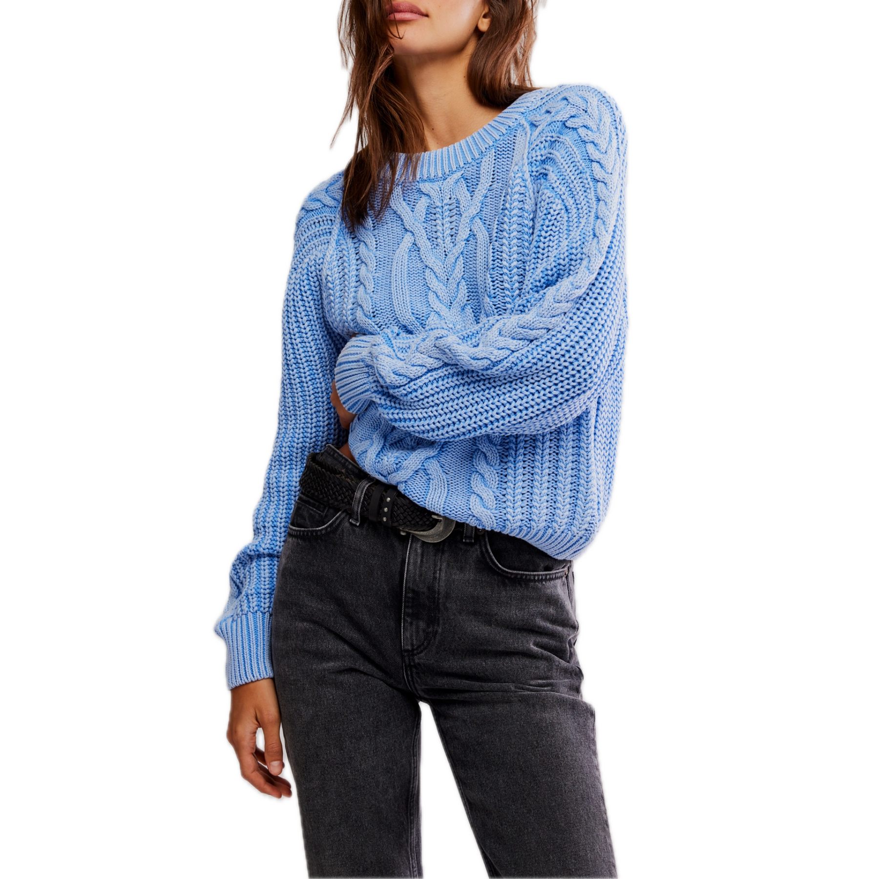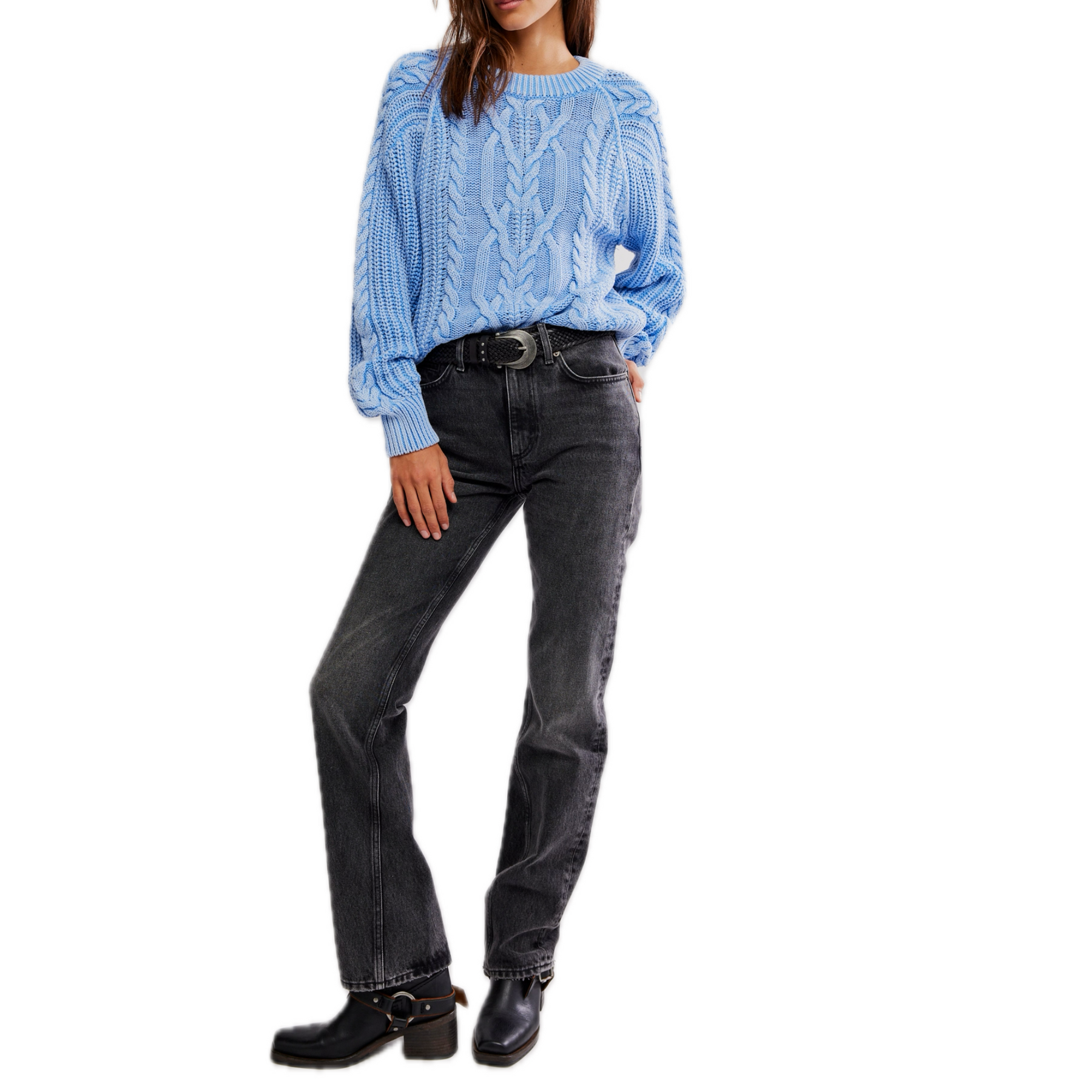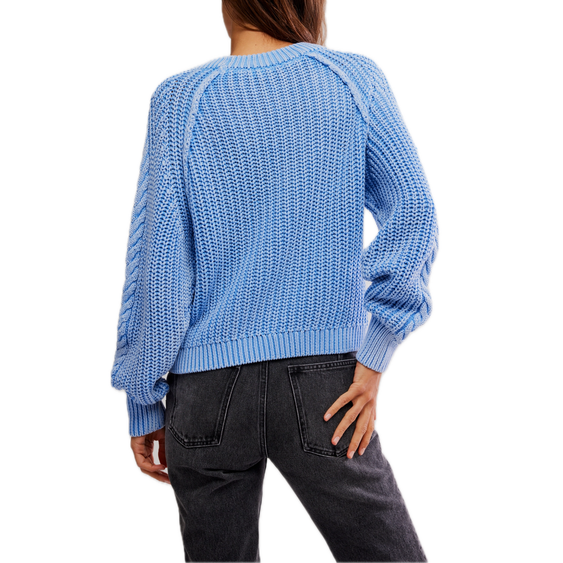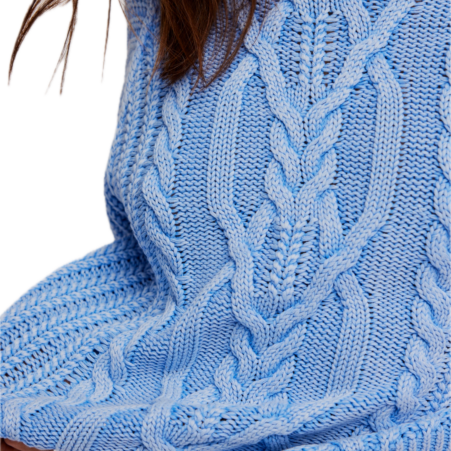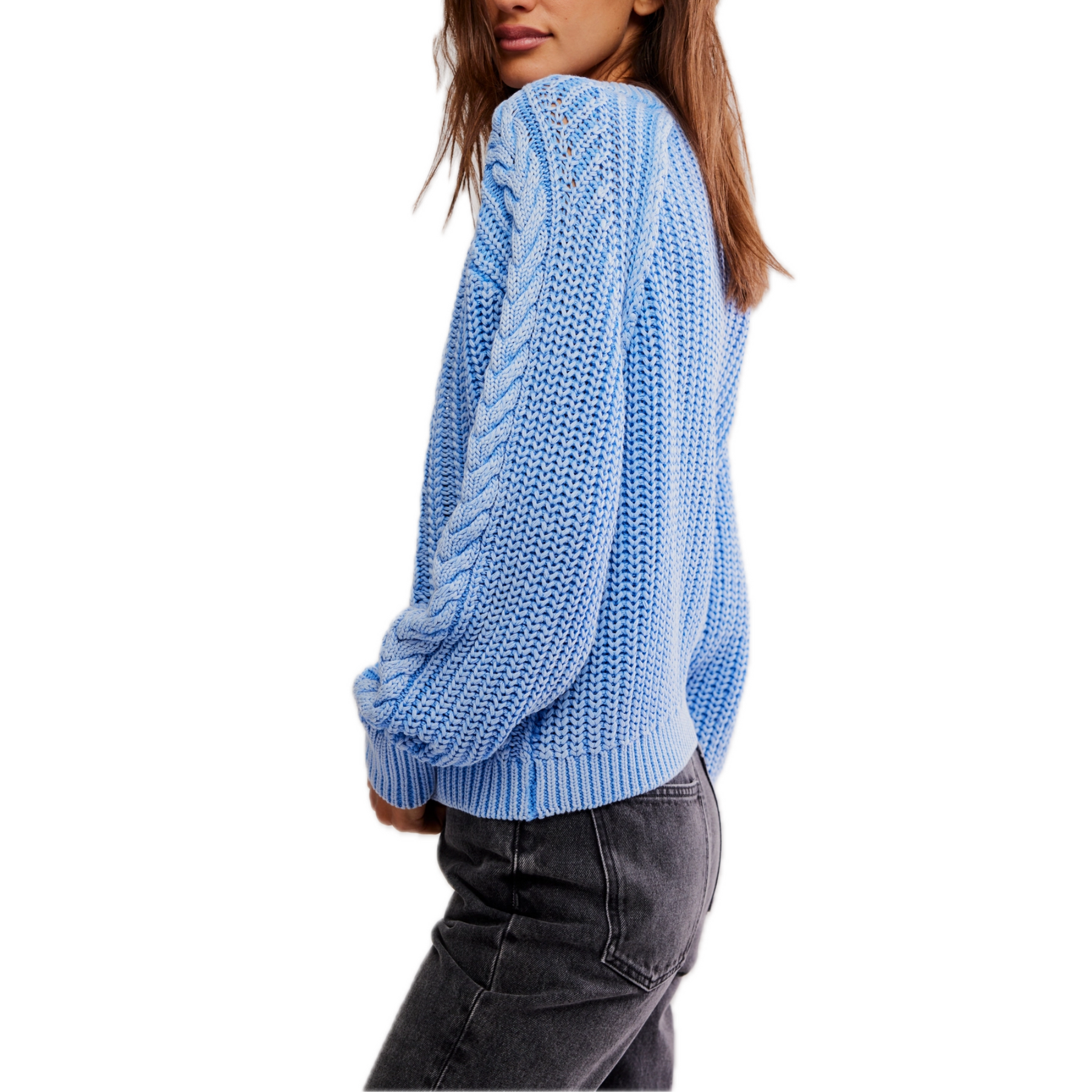 The Frankie Cable Sweater in Della Robbia Blue by Free People is a cozy classic with a fresh twist. Featuring a chunky cable knit, scoop neckline, and relaxed, slouchy fit, it’s the perfect piece for easy fall layering. With ribbed hems and timeless texture, this sweater pairs effortlessly with everything from denim to skirts for a look that's both laid-back and polished.