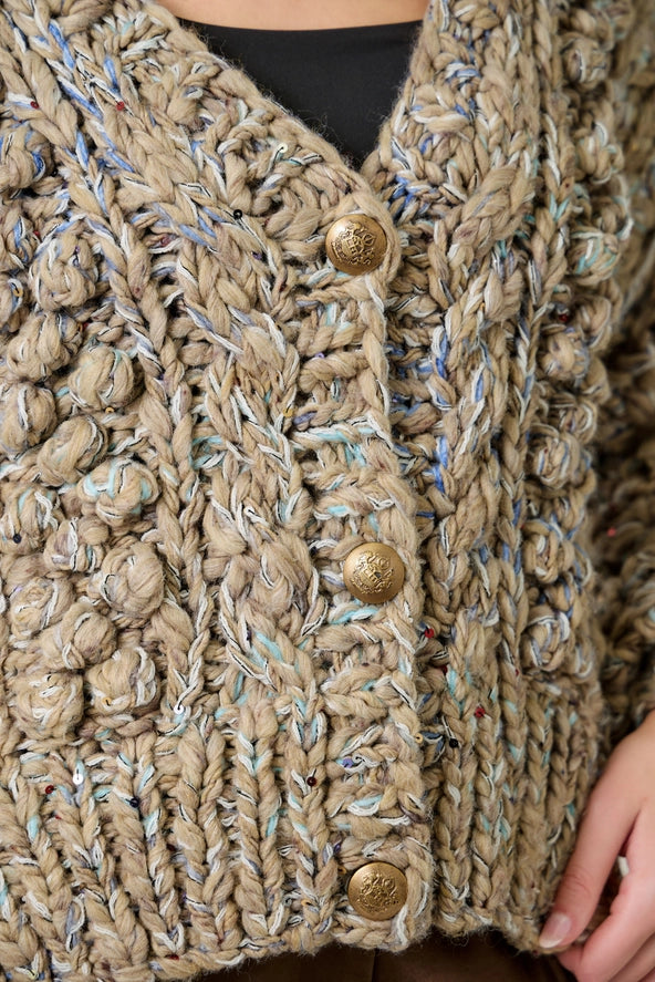 Cozy meets playful in the Snow Day Sweater Cardigan, a standout chunky knit cardigan designed with allover multicolor sequins that add subtle sparkle to every movement. Featuring soft bubble sleeves, a classic button-down front, and comfortable side slits for easy layering, this textured statement piece brings warmth, charm, and a touch of whimsy to your cold-weather wardrobe. Perfect for casual days, festive outings, or adding personality to everyday looks, this flecked sequin cardigan is your new go-to.
