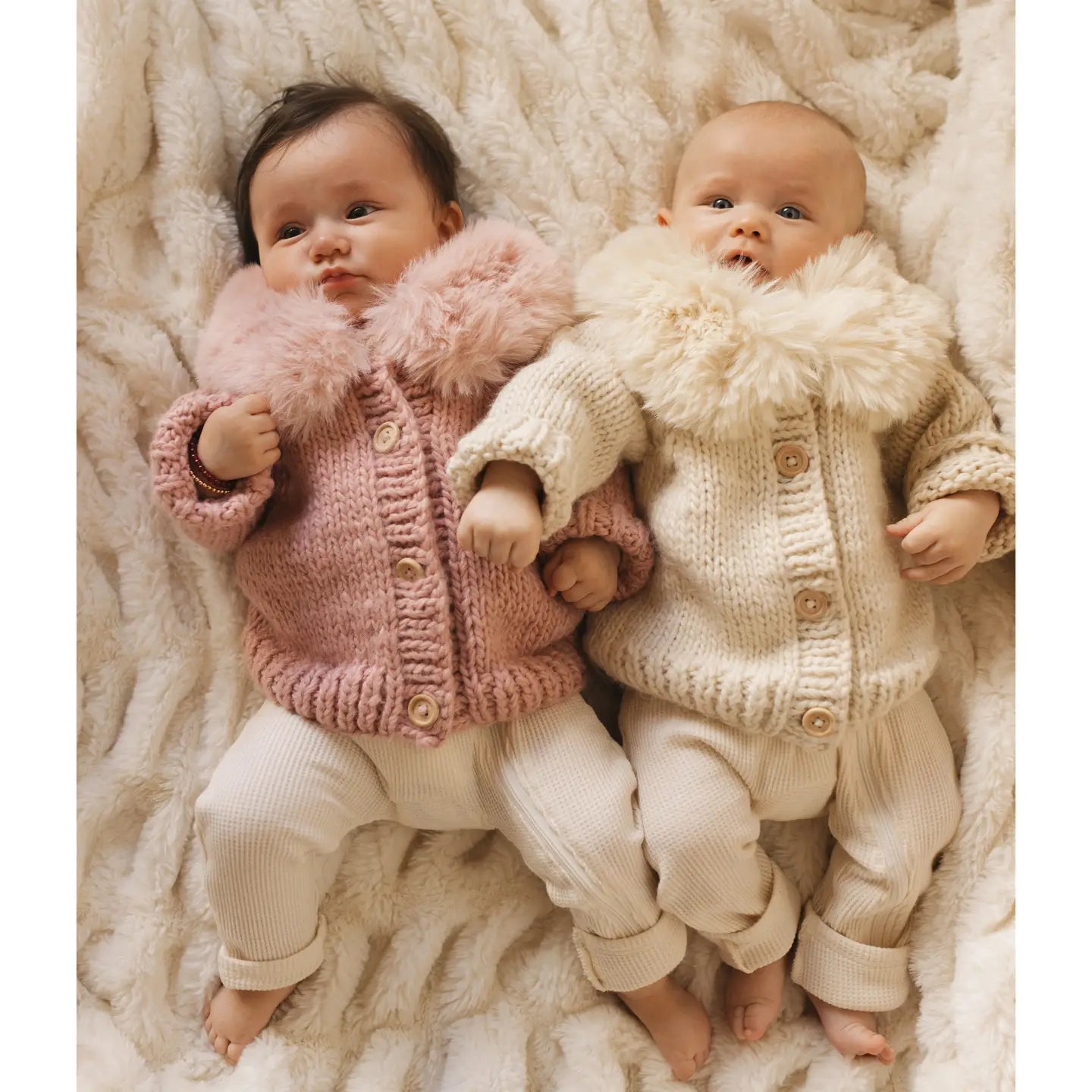 Indulge in luxury with our Fur Collar Cardigan. The detachable faux fur collar adds elegance to this hand-knit, chunky sweater. Featuring cabled raglan sleeves and natural wood buttons, it's a timeless piece. Plus, our commitment to sustainability means you'll be making a positive impact with every wear. ♻