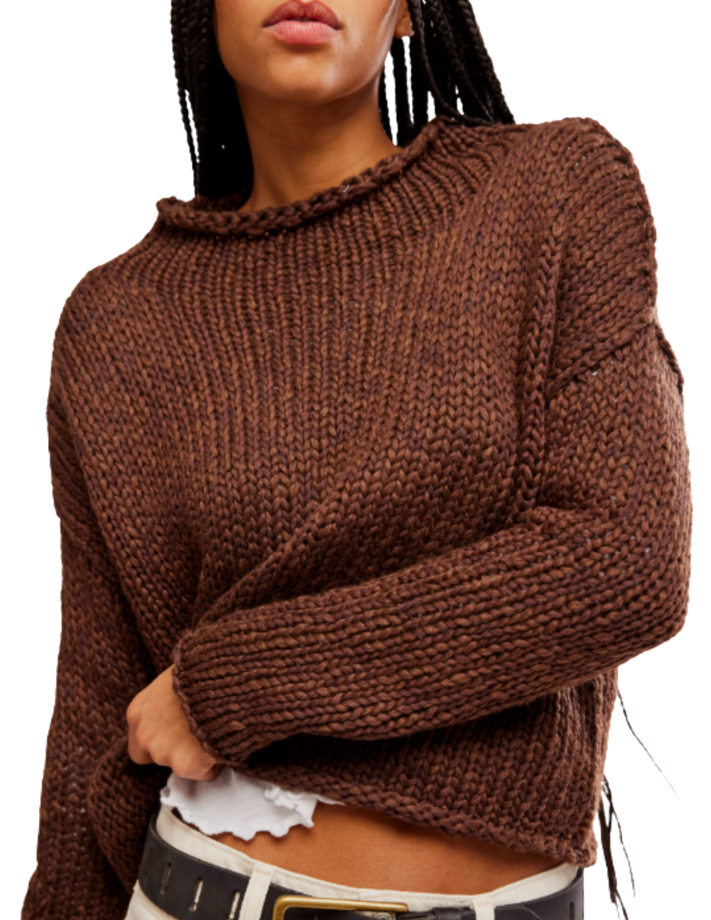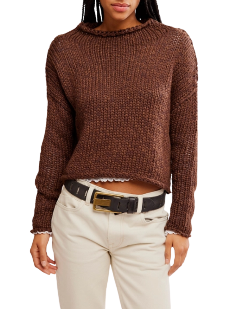 The Opal Rollneck Sweater in Coffee by Free People is the perfect lightweight layer for easy, everyday style. Crafted from conscious cotton knit, it features a relaxed, boxy fit, rolled neckline, and dropped shoulders for a laidback feel. With its soft, airy texture, this transitional sweater is ideal for fall layering or breezy days year-round.