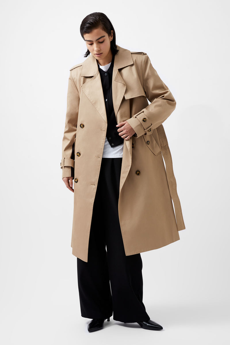 The Coco Twill Trench Coat by French Connection is a timeless outerwear essential crafted in textured twill for a classic, structured look. Designed with a flattering D-ring belt, buttoned storm pockets, napoleon collar, and storm flap, it checks every box for style and function. With its traditional trench silhouette and thoughtful details, this coat is perfect for fall layering, office commutes, or elevating your everyday style for seasons to come.