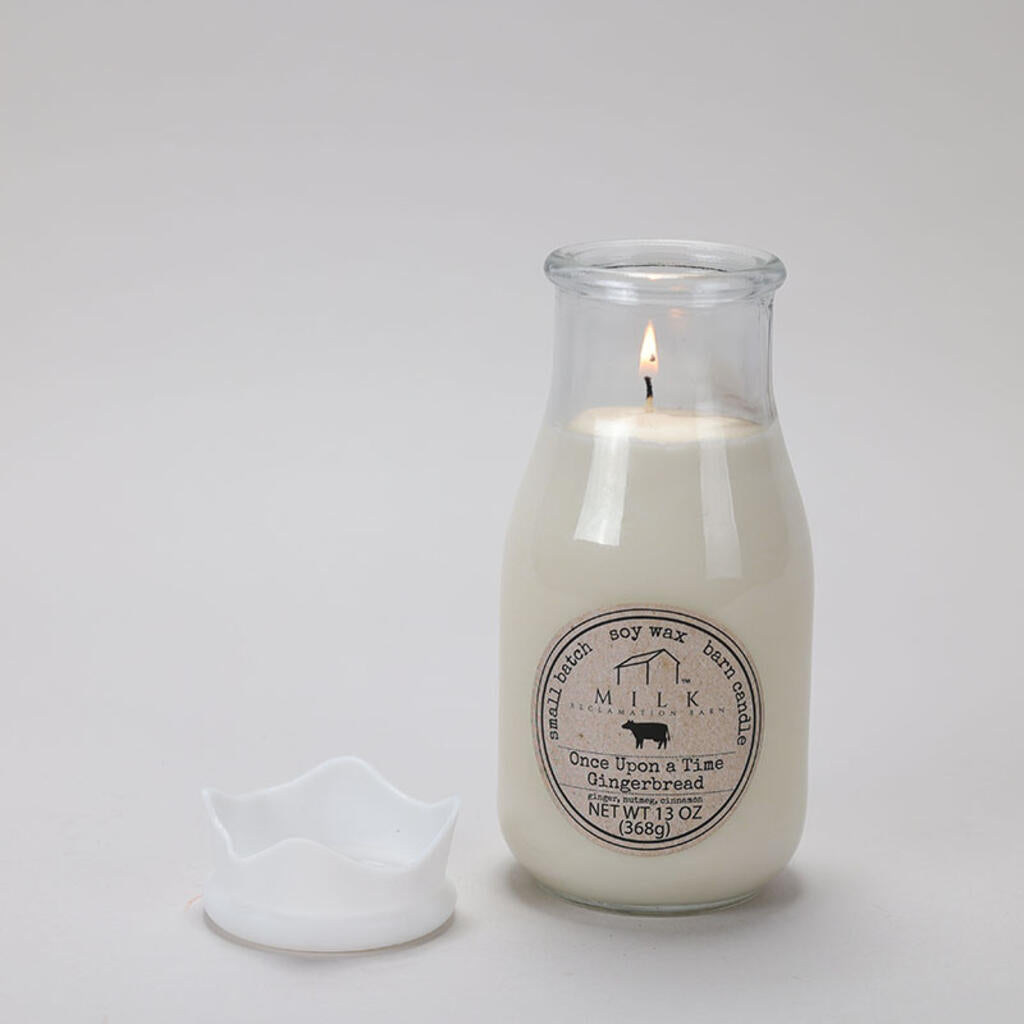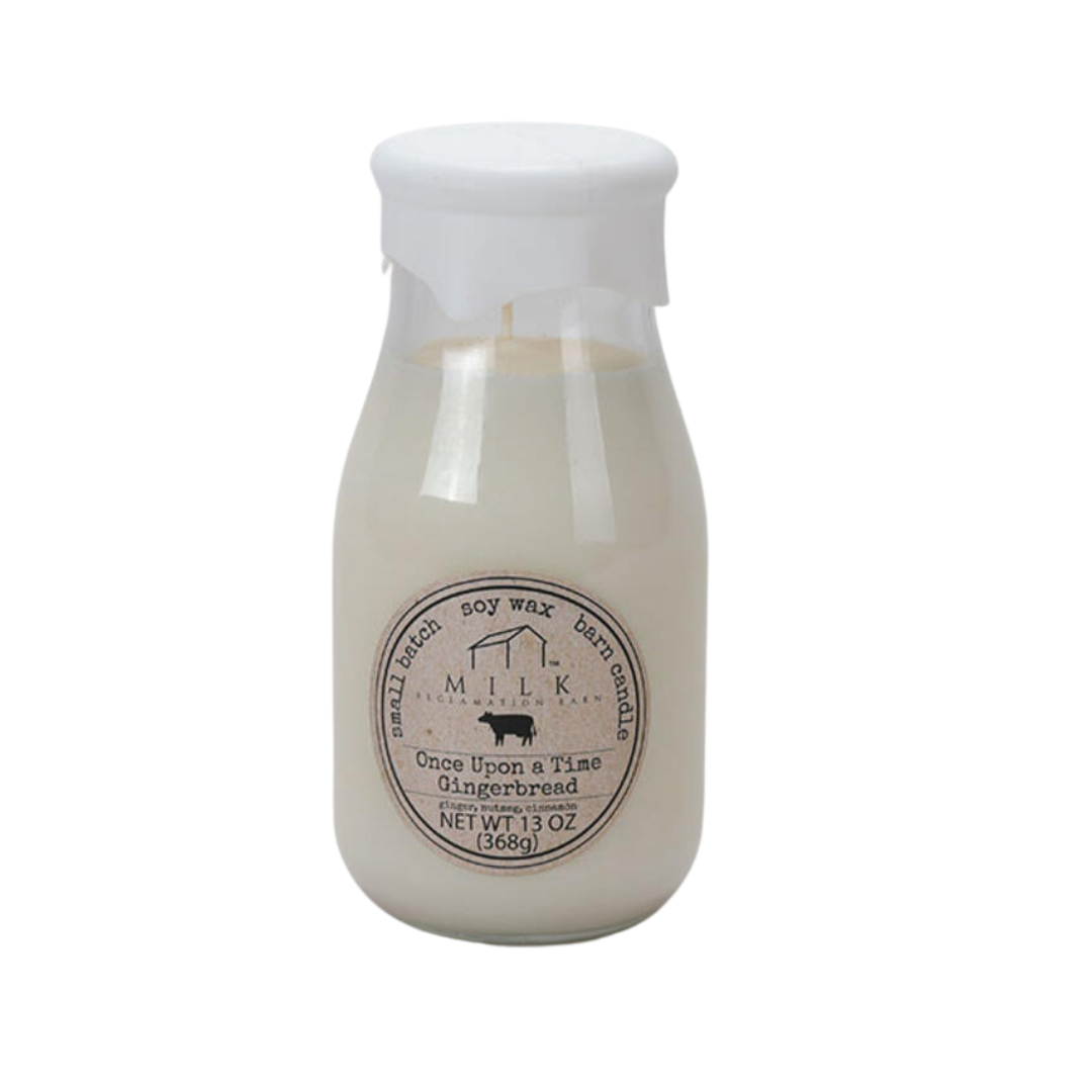 Adorn your home with the warm and festive aroma of our Milk Bottle Candle in Gingerbread. Once Upon A Time Gingerbread scent is sure to bring the richness of the holiday season to your abode. The scent of Christmas is captured in a beautiful milk bottle candle, perfect for the luxury home.
