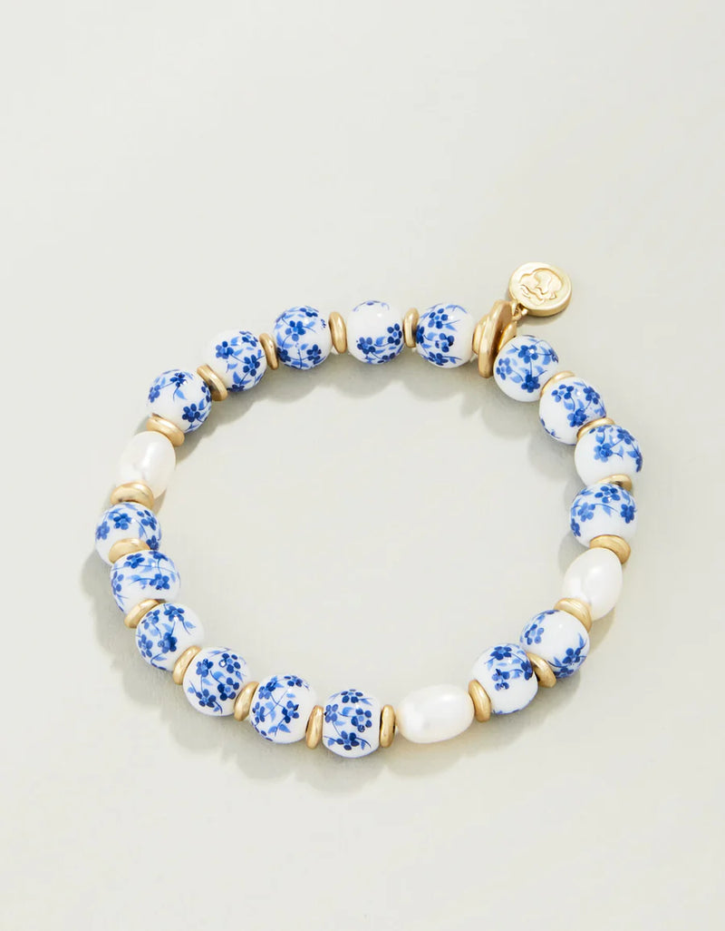 Celebrate meaningful moments with the Blue Floral Bead Bracelet by Spartina, a thoughtful Mother’s Day gift and perfect gift for her. Inspired by nature, this elegant ceramic bead bracelet features 8mm beads accented with luminous freshwater pearls and 18kt matte gold plated jewelry details. Designed as a versatile stretch bracelet, it offers effortless style and comfort for everyday wear.