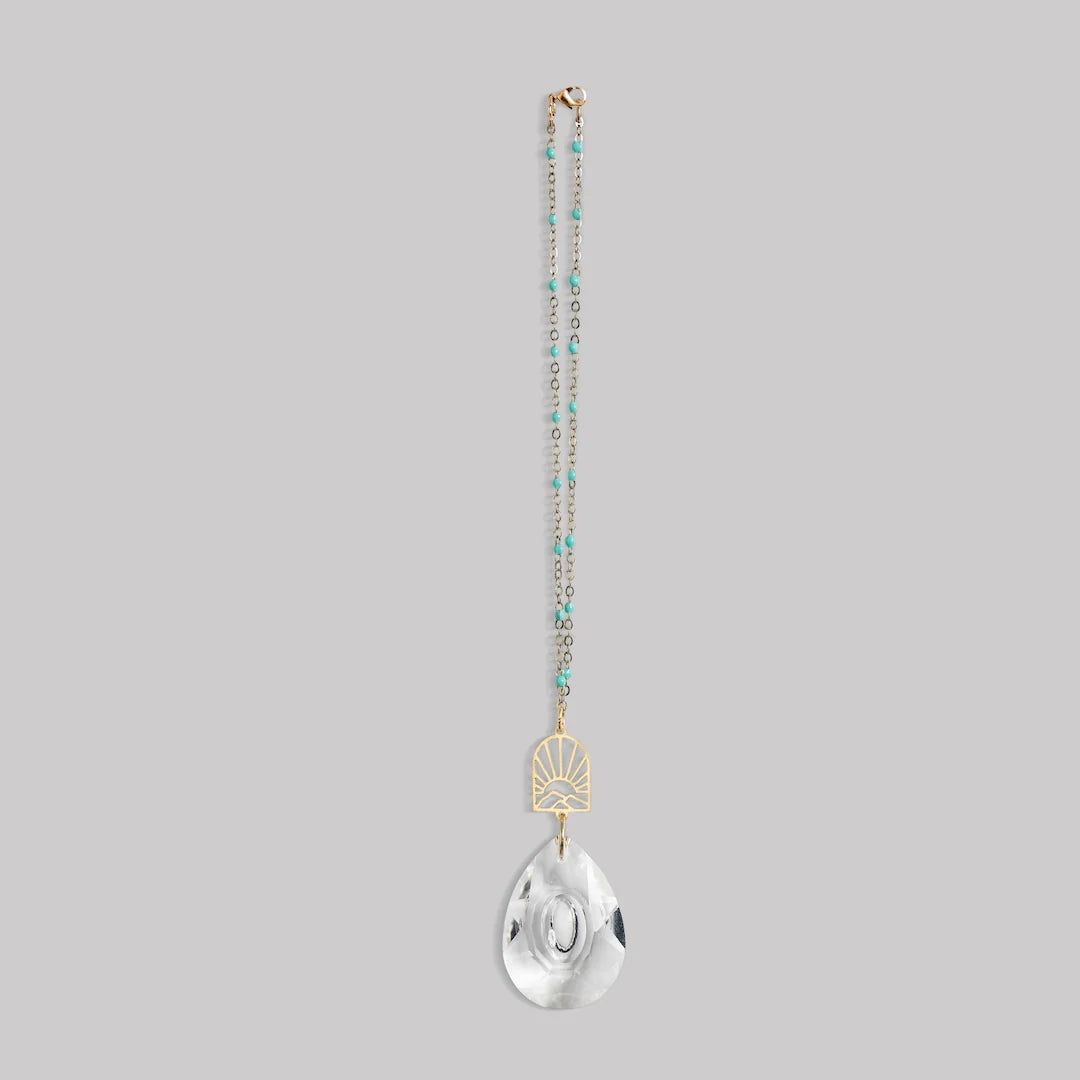 The Sunrise Mountain Pocket Suncatcher captures the beauty of a new day in a compact, light-catching design. Inspired by our best-selling suncatcher décor, it adds a burst of rainbows and sparkle to any space—perfect for windows, plants, or your rear-view mirror. Made from gold-dipped brass and shatter-resistant glass, this travel-ready treasure brings warmth and light wherever you go.