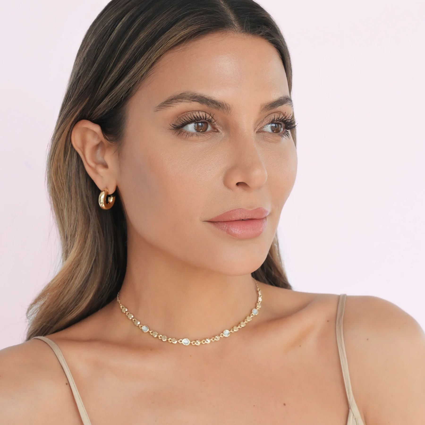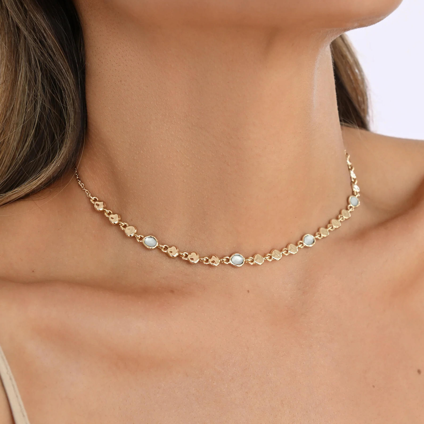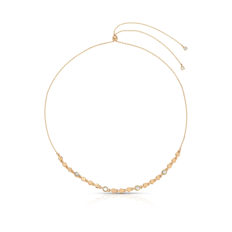 Channel coastal elegance with the Sea Siren Adjustable Choker. This dainty 18K gold-plated choker is delicately adorned with seastones, capturing a touch of ocean-inspired minimalism. Perfect for layering or wearing solo for an effortlessly refined, beachy look.