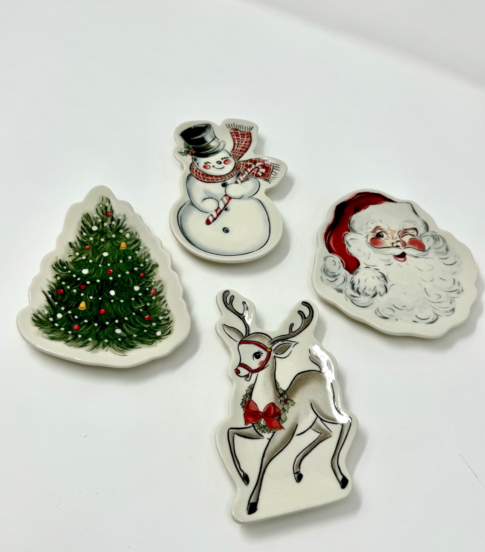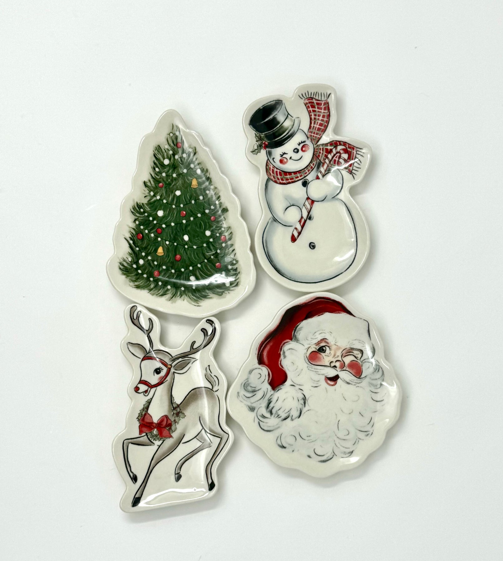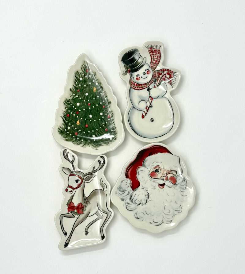 The Classic Xmas Tidbit Plate features stoneware dishes in 4 unique styles, perfect for serving holiday appetizers. Its elegant design and durable material make it a timeless addition to any kitchen.