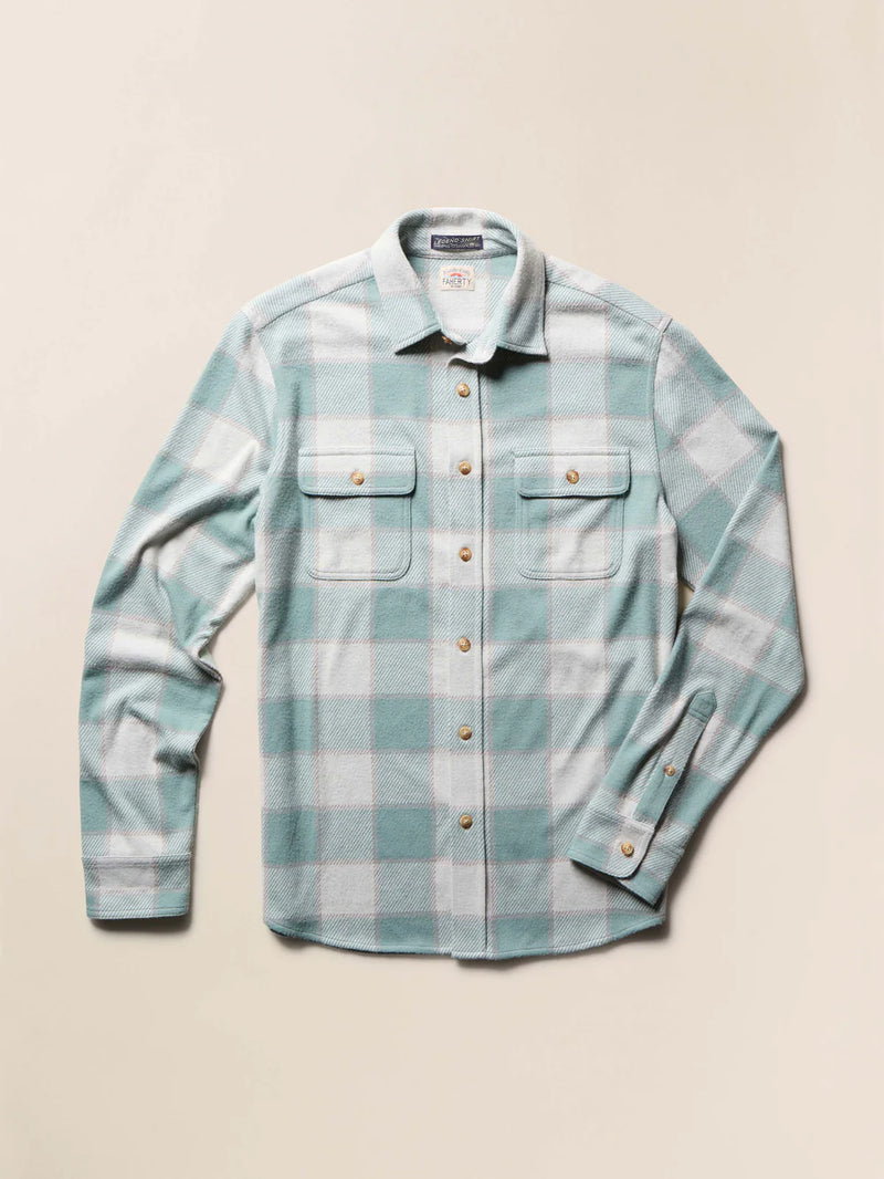 Experience iconic comfort with the Legend Sweater Shirt in Sage Plaid by Faherty. Crafted through a meticulous 64-step process, this men’s sweater shirt features Faherty’s exclusive custom fabric blend for an unbelievably soft knit feel. Stylish yet relaxed, the Legend™ Sweater Shirt delivers unmatched comfort and timeless plaid style you truly have to feel to believe.