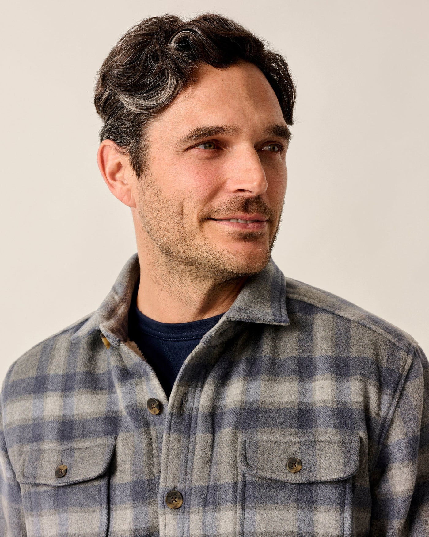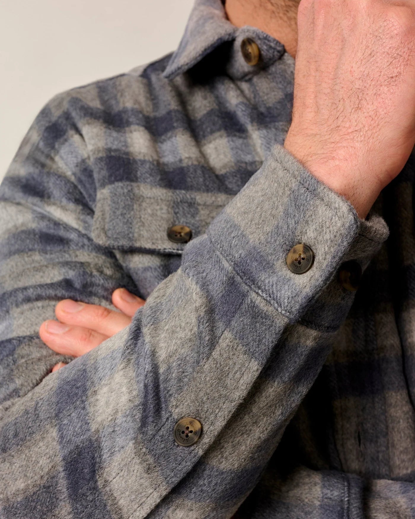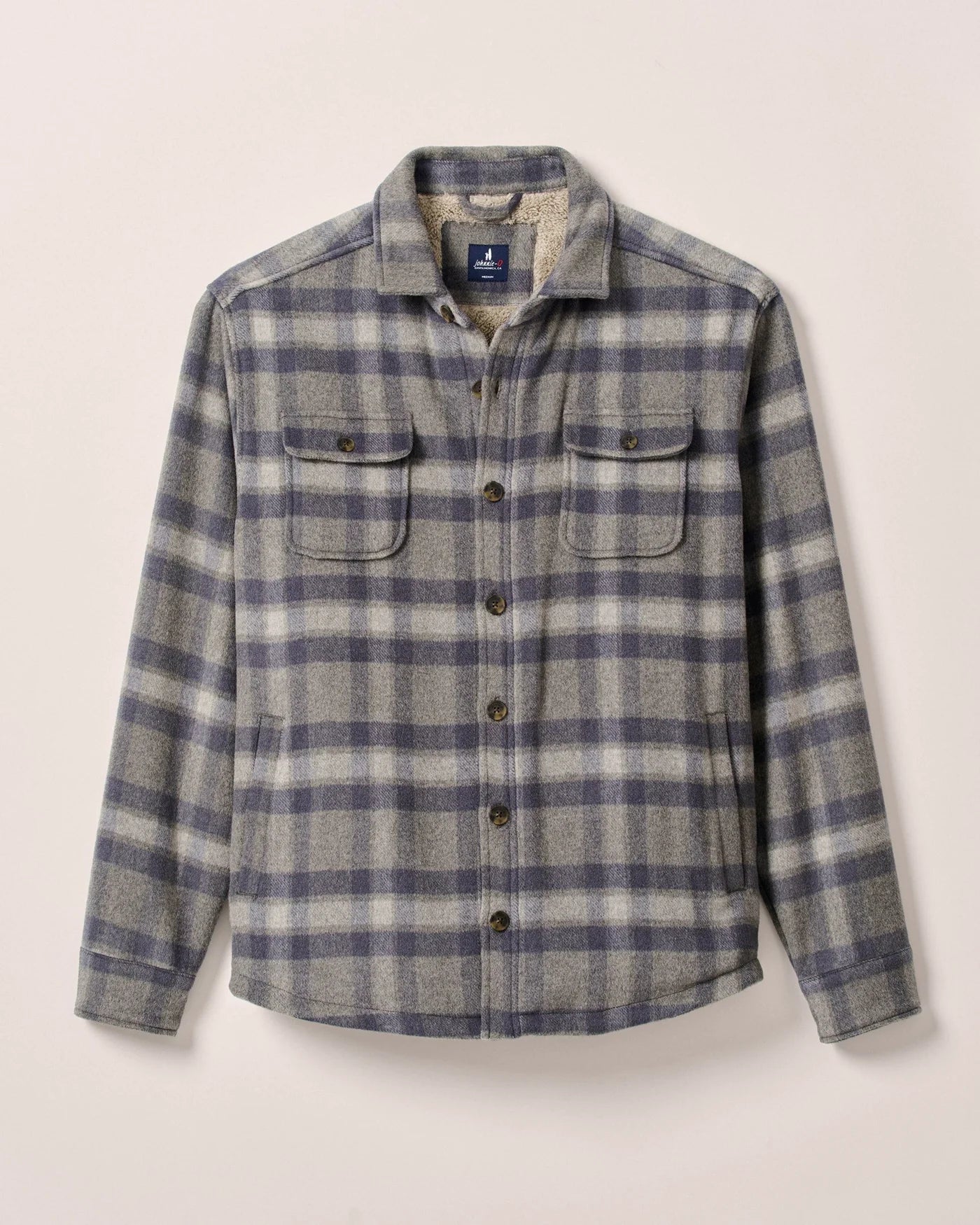 The Hassler Cashmere Shacket in Light Grey by Johnnie-O combines the tailored look of a shirt with the warmth of a jacket, making it the perfect wool cashmere blend shacket for crisp days. Lined with cozy sherpa fabric for extra insulation and comfort, it’s a versatile layering piece that works from city streets to weekend escapes. Finished with refined soft-touch horn buttons, this men’s cashmere shacket brings elevated style to your cold-weather wardrobe.