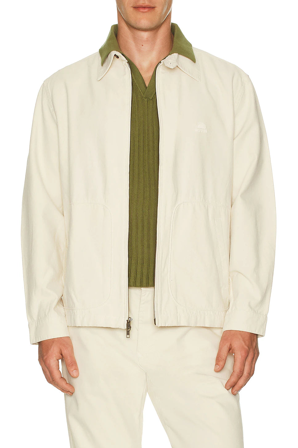 The Awake Jacket in Natural by Rhythm is a clean, versatile layer for your men’s fall wardrobe. Crafted from durable midweight 100% cotton twill, this casual fall jacket features a collared neckline, front zip closure, side pockets, and buttoned cuffs for everyday functionality. Finished with subtle logo embroidery and a relaxed fit, it’s the perfect go-to for effortless layering all season long.