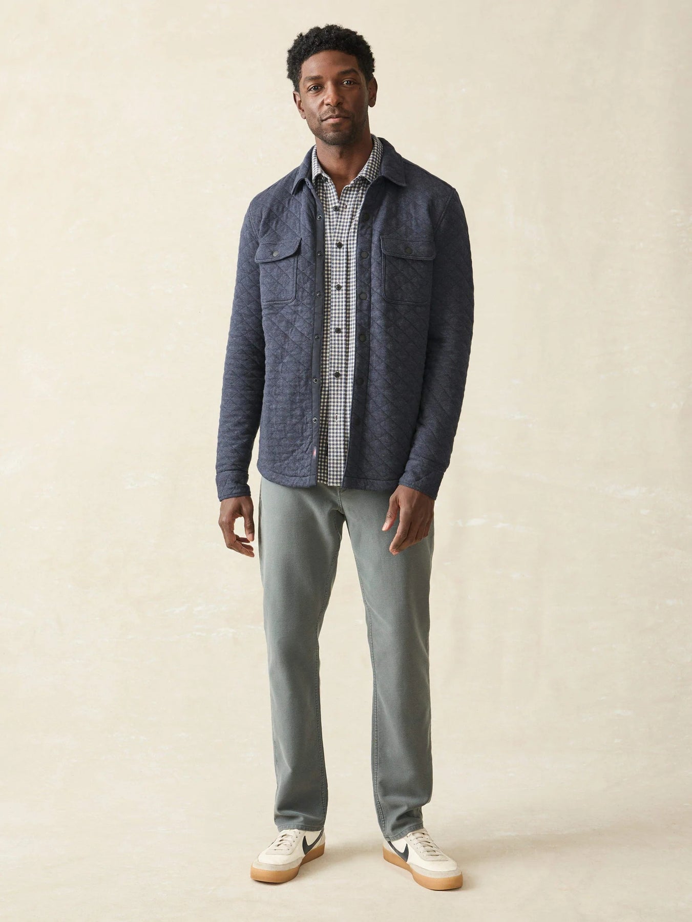 The Epic Quilted Fleece in Navy Melange by Faherty is the perfect transitional layer, combining the structure of a shirt with the warmth of a jacket. Crafted with three layers of quilted fabric, this midweight fleece CPO offers texture, durability, and comfort. Thoughtful utility details make it endlessly versatile—ideal for layering as cooler weather sets in.