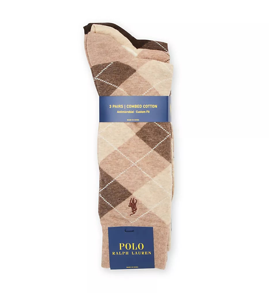 The Argyle 3-Pack in Khaki by Polo Ralph Lauren features a refined take on the timeless argyle pattern, perfect for adding subtle style to everyday looks. Designed for year-round comfort, these classic dress socks offer a versatile neutral palette and a soft, durable fit that complements both casual and tailored outfits.