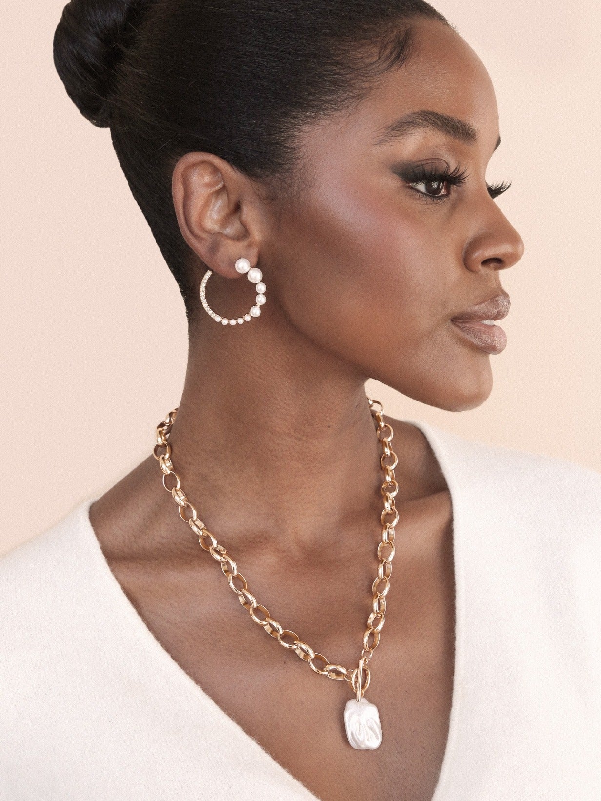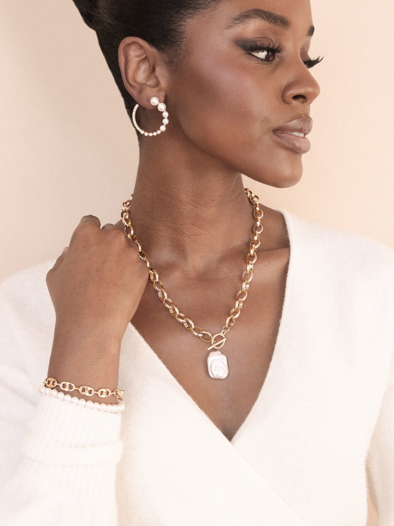Experience timeless sophistication with our 18K Gold Pearl Necklace, featuring a luminous pearl pendant that shimmers with every movement. Suspended from a delicate 18K gold chain, this piece blends classic elegance and modern minimalism, making it perfect for both everyday wear and special occasions. A versatile and heirloom-worthy necklace, it’s designed to complement any style with effortless grace.