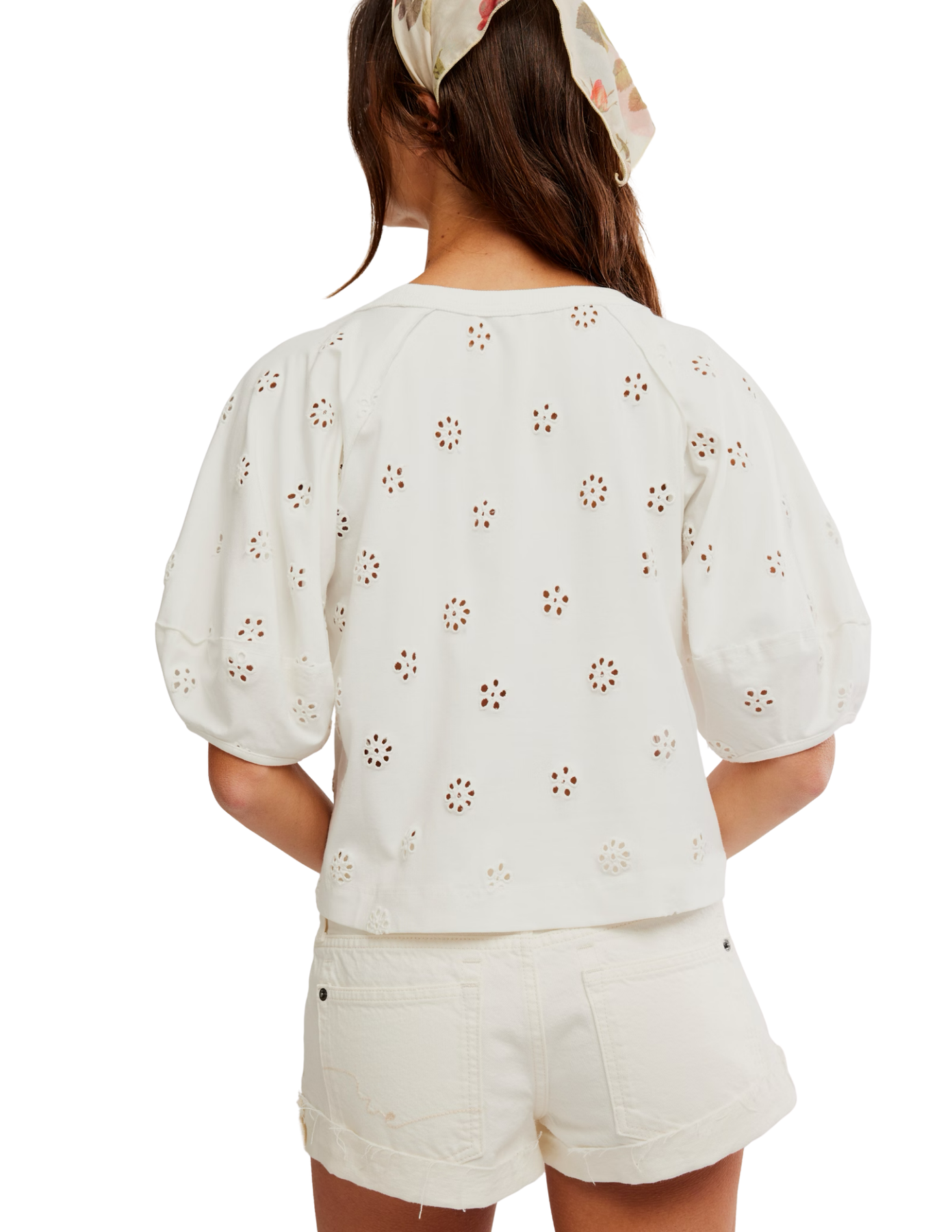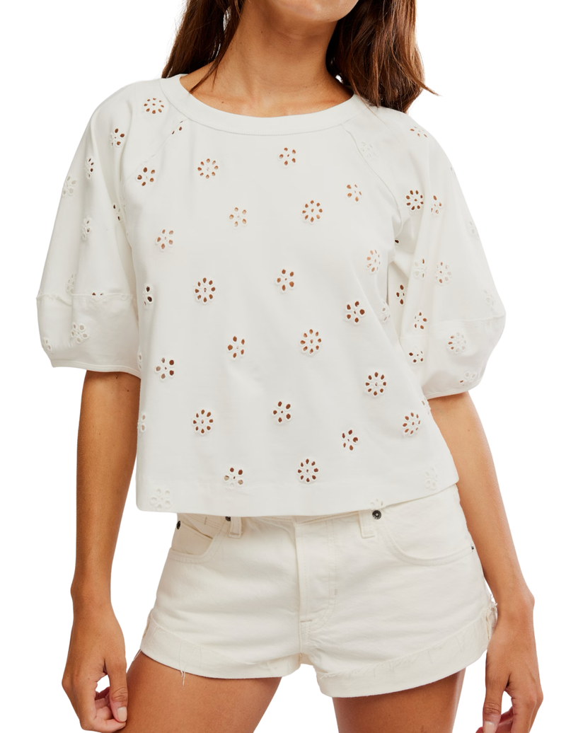 The Jessie Eyelet Tee in Whisper White by Free People brings effortless polish to everyday styling. Crafted as a soft knit blouse with delicate eyelet embroidery, this refined Free People top offers a clean, feminine look ideal for an office outfit or elevated casual wear. Timeless and versatile, it’s the perfect blend of comfort and sophistication.