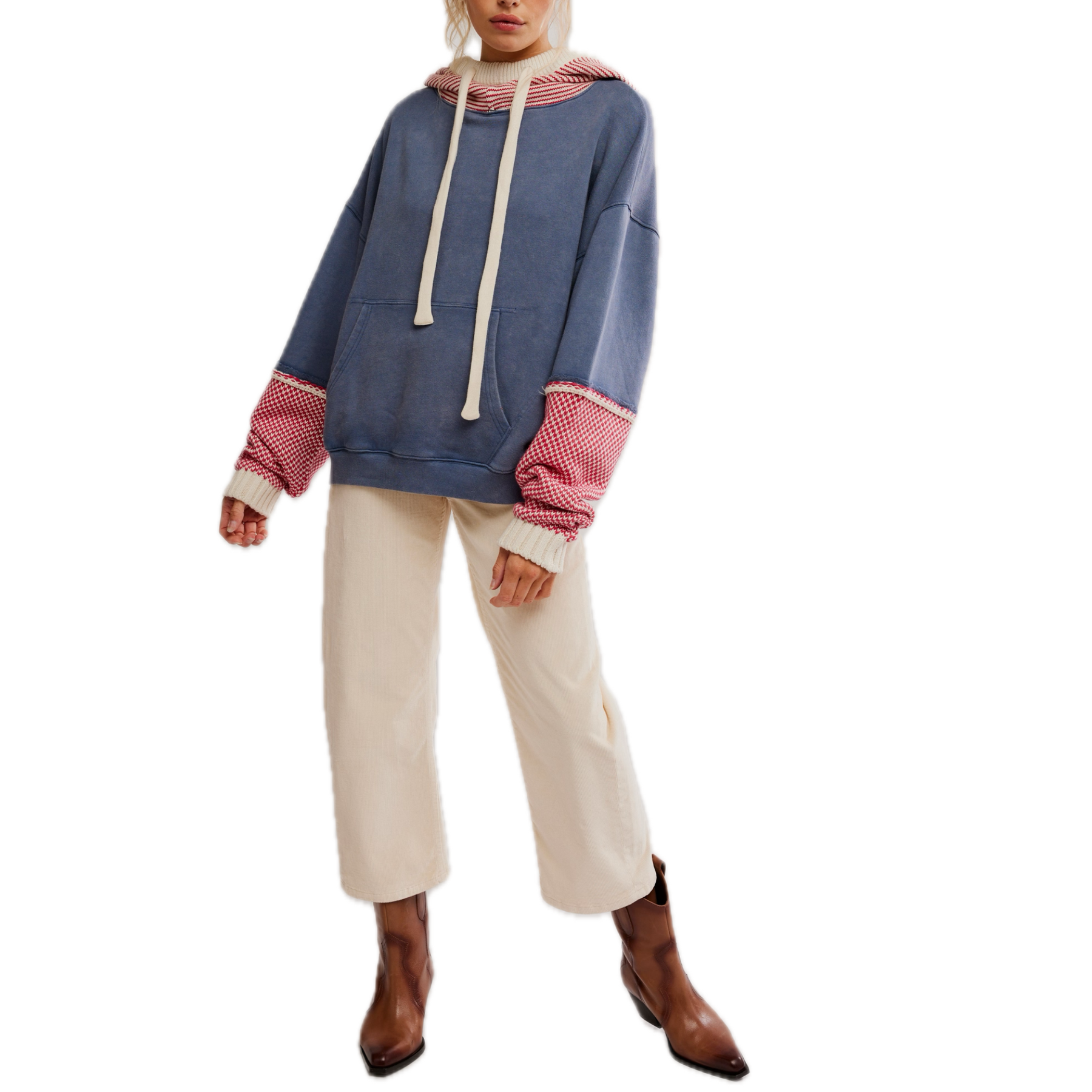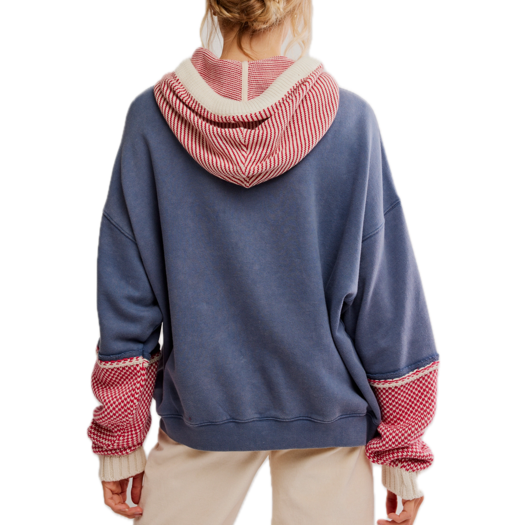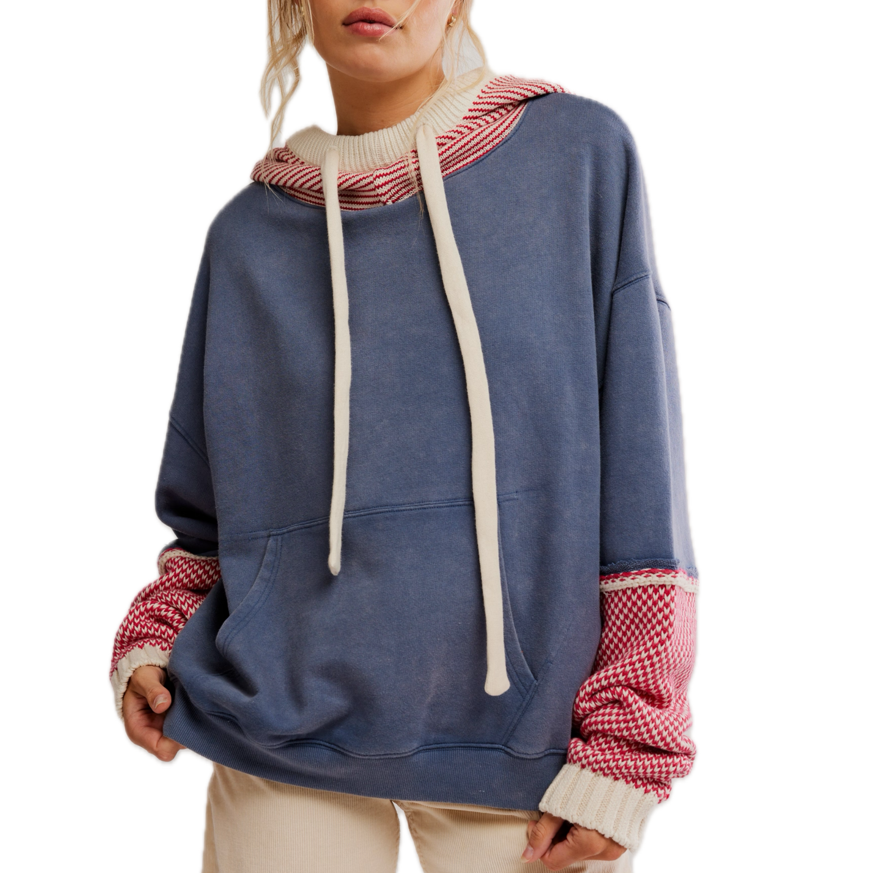 The Snug Bonnet Sweatshirt in Indigo by Free People blends cozy comfort with elevated style, featuring a unique mix of cotton and knit fabrications for a layered, textural look. This oversized hoodie is designed with drop shoulders, balloon sleeves, a roomy front pocket, and ribbed trim for structure. Finished with an adjustable drawstring hood, this indigo sweatshirt is the perfect laid-back layer for cooler days.