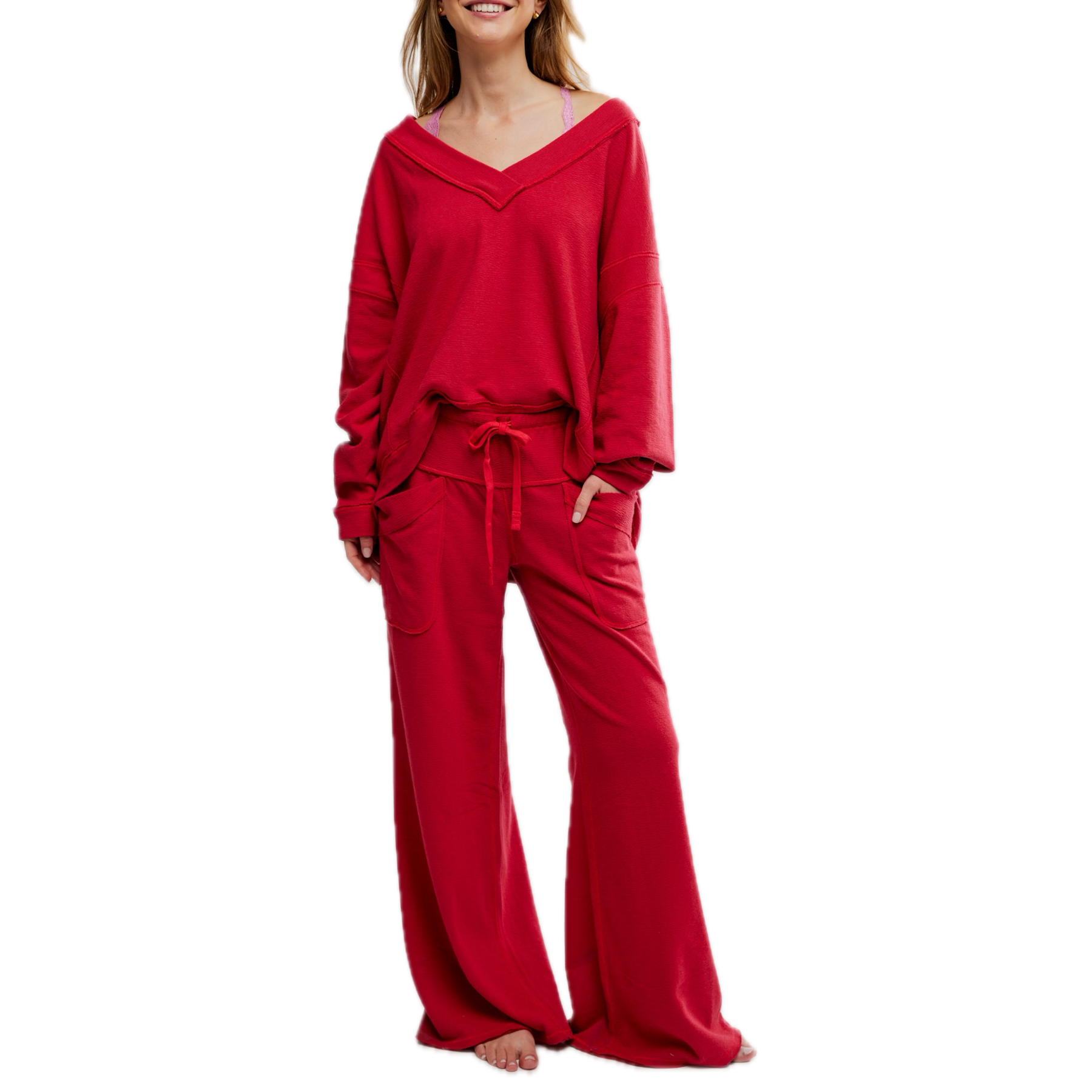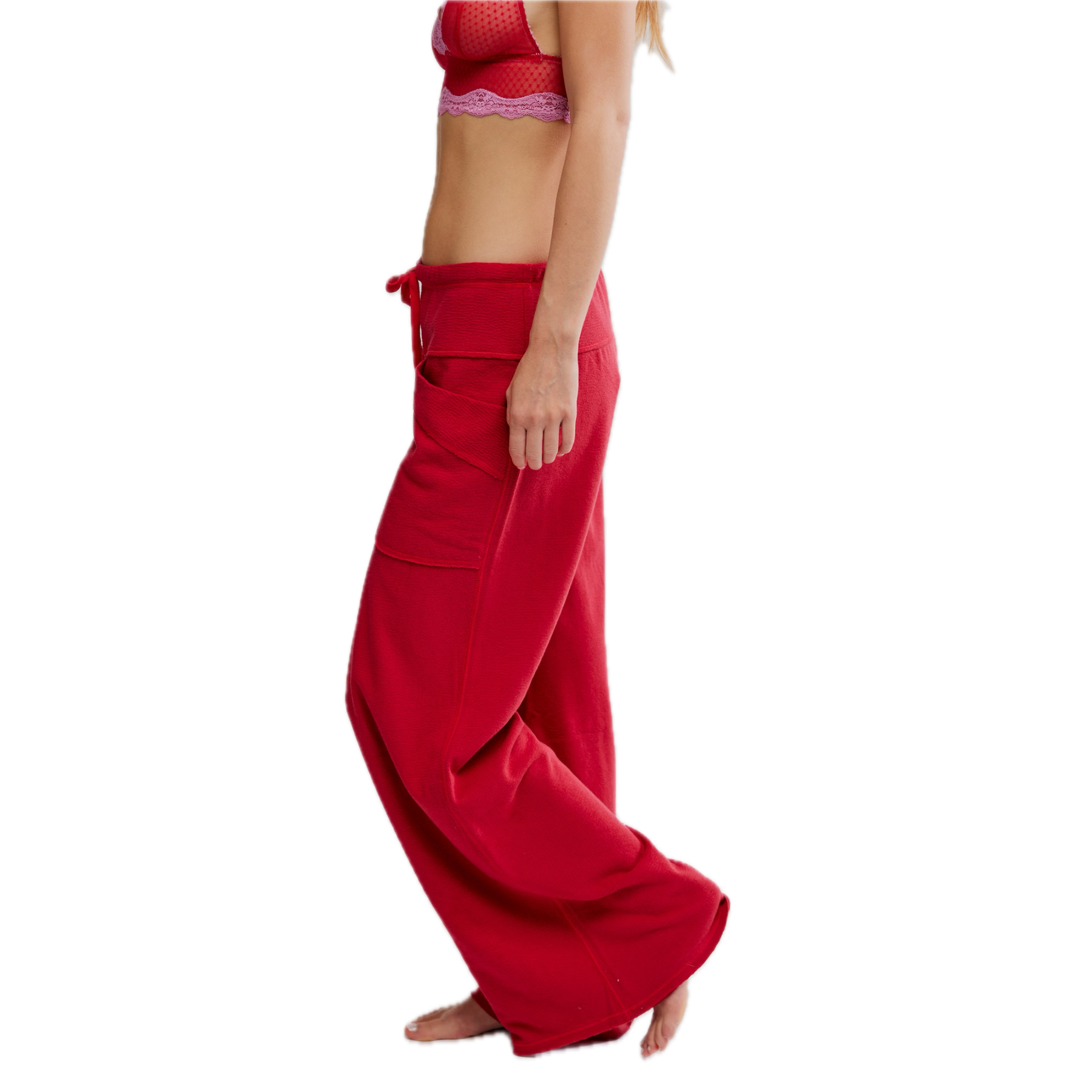 Lounge in laid-back style with the Staycation Lounge Pants in Deep Cherry by Free People, designed in a relaxed high-rise, straight leg silhouette for all-day comfort. These effortlessly cool women’s sweatpants feature a soft feel with an elasticated drawstring waistband, exaggerated side pockets, and a raw hem for that perfectly lived-in look. The bold deep cherry hue adds a pop of color to your casual wardrobe staples.