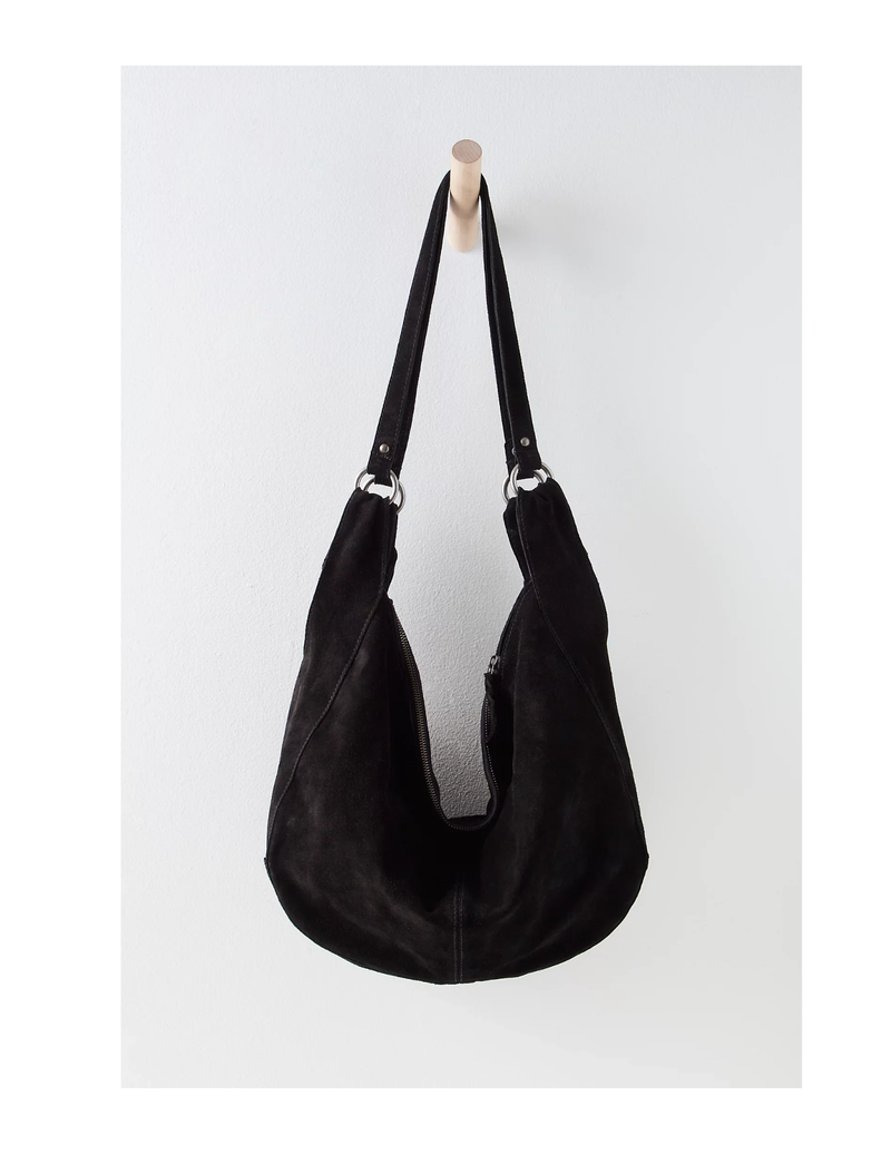 The Roma Suede Tote Bag in Black by Free People is your new go-to for everyday style. Crafted from soft, supple suede, this slouchy hobo bag features a roomy interior, secure zipper closure, and elongated shoulder straps for easy wear. Fully lined and effortlessly chic, it’s the perfect everyday tote to carry you through workdays, weekends, and everything in between.