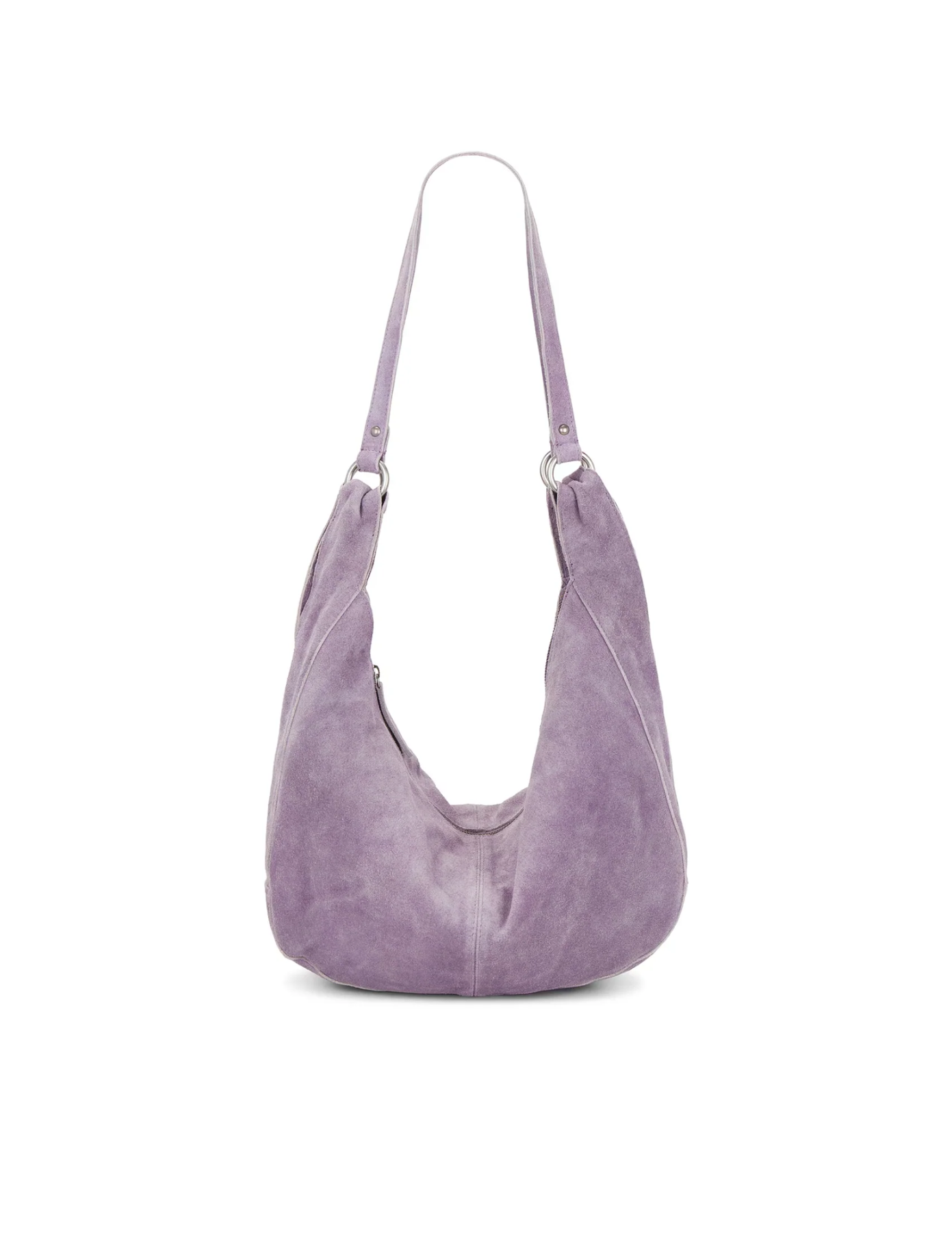The Roma Suede Tote Bag in Lilac by Free People is the ultimate blend of softness and function. Crafted from luxurious suede in a slouchy hobo silhouette, it features elongated shoulder straps, a secure zipper closure, and a fully lined interior—making it the perfect everyday carry-all with a touch of laidback elegance.